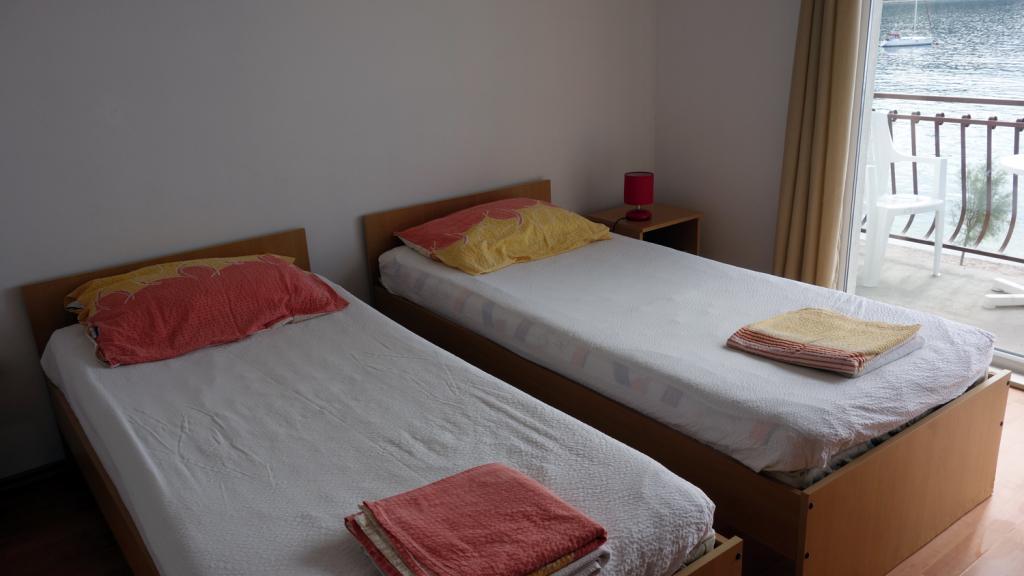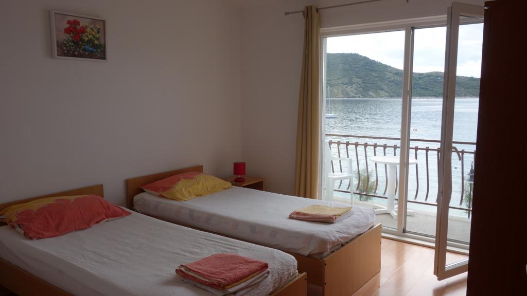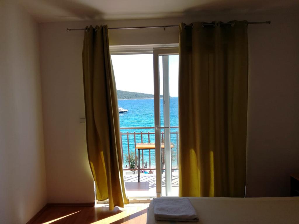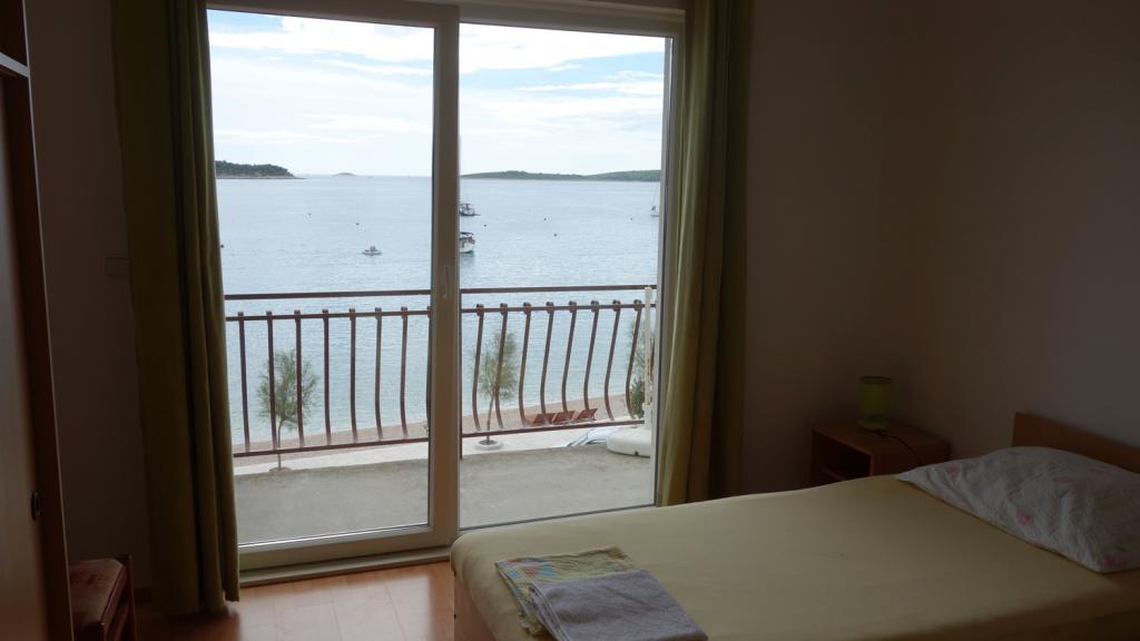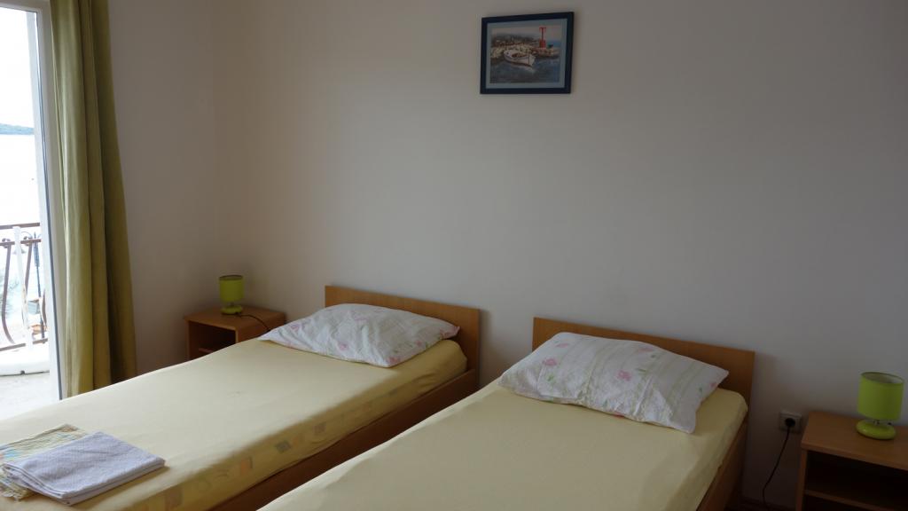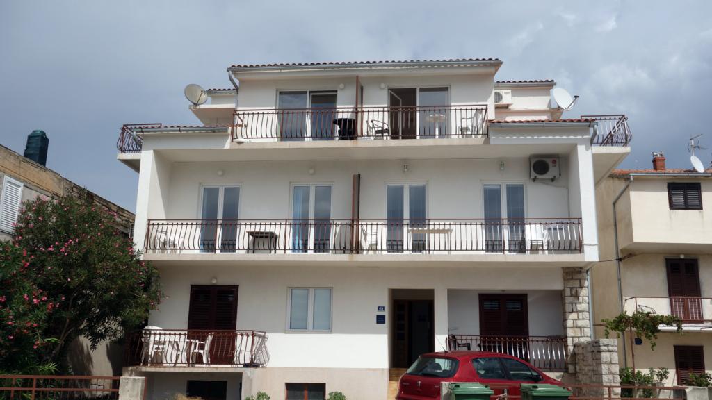 Apartments are located in a family house in Primošten, first row to the sea. Pebble beach is in front of the house, and free parking is located at two locations - one in front of the house and the other 5 minutes walk away. The two 4 1 apartments are on the second floor. One apartment has three terraces and the other two. Both apartments have sea views. Studio A2 (room with bathroom and kitchenette) is located on the high ground floor. This apartment has a terrace and views of the garden.