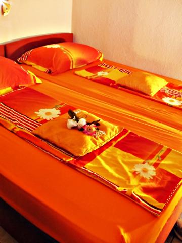 They say how much money, so much music. It is the same in this case. As soon as we arrived, the landlady politely attacked me as to why we were late, because we had announced our arrival at 11-12 o'clock. She neither cares nor concerns what has stopped us on the way, which is quite long! She continued to beat me about it even after I apologized (and I didn't want to explain to her that I was pregnant and that I was very sick on the way). It was immediately clear to me what kind of person she was. We get to the apartment, there is not a single towel. A family of four, we have nothing to wipe off after swimming in a 3-star apartment. WiFi is not working. I go later to ask about the towels, only for the lady to say that their guests usually bring their own towels, but of course they will give them to me. You just had to ask. The furniture is worn out, the very next day you can see that everything is hanging instead of standing... The child's bed is ruined, the floor. He slept on a mattress on the kitchen floor because we didn't want to deal with them while they were fixing it. Pillows are old, I don't keep that kind of stuff even as a reserve for guests, I throw it away. I don't know what they think of us to put those scumbags on our bed. There is no soap, not even 5 ml for the guest to at least wash his hands when he comes from the road. We did not receive the welcome drink mentioned. It was offered to us as soon as we got out of the car: tired, cooked, hungry, hands full of things. We politely declined because we can't at the moment and that was all from them. On the terrace, which should be shared by the couple of upper apartments, on the first day, a boy from below, probably the owner's grandson, was lounging on the couch. He didn't move even when he saw that we were going to sit down. In the following days, he was not there. Basically, I have never experienced such savings on a guest. The only positive is that they have air conditioning and a nice view.