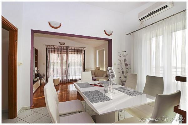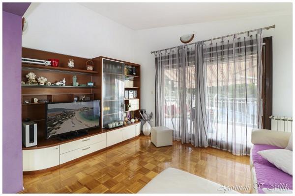 Very nice welcome, by a communicative and very helpful owner, especially when 4 adults and two children arrive. A magnificent apartment located reasonably high, but thanks to this with a wonderful view of the Adriatic Sea and sunsets. Very near to the beach, and the beach about 5 minutes to the city center. Apartment very well equipped, large, clean and nice rooms with balconies around the apartment (from every place visible azure sea). Functional and clean both bathrooms. Freedom in every inch - you can feel "at home " and really relax. The description given and the pictures presented present the actual state - without photoshop. I honestly recommend - especially since it was not my first stay in Croatia or in this city.