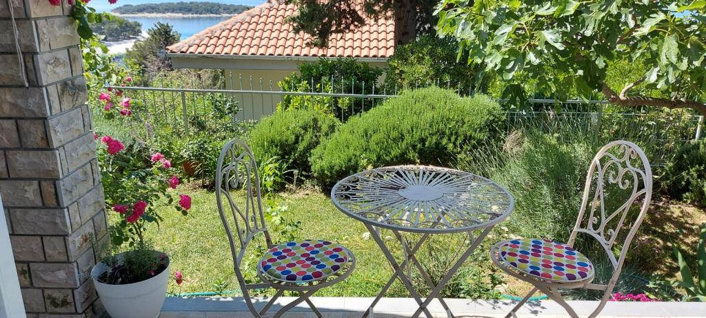The apartments are beautifully decorated in a house situated on a hill with a beautiful view. To the rocky beach has 5 minutes to the beach for children 7 min. The center 10 minutes on foot.