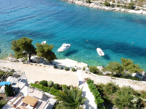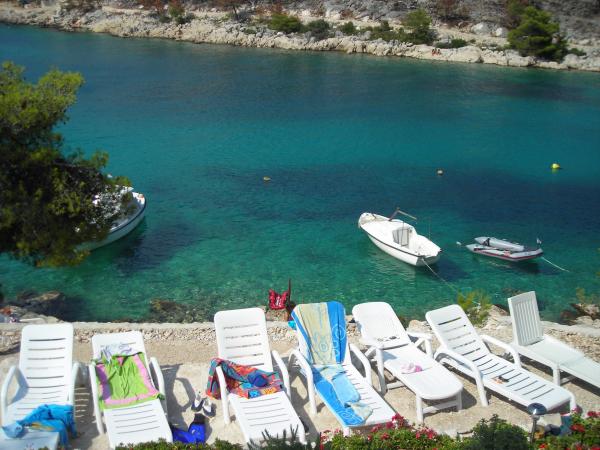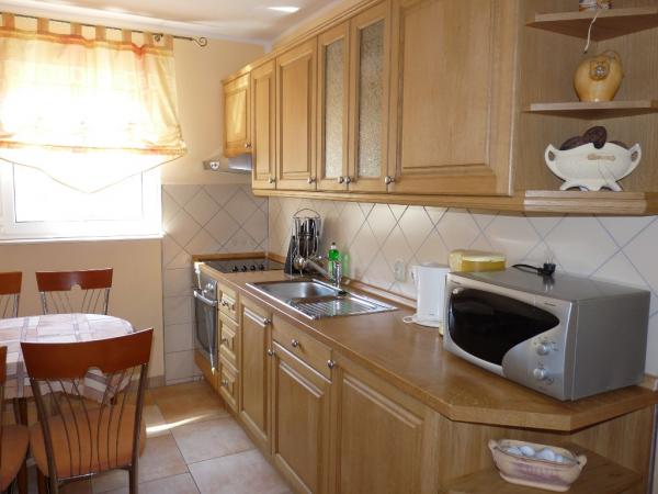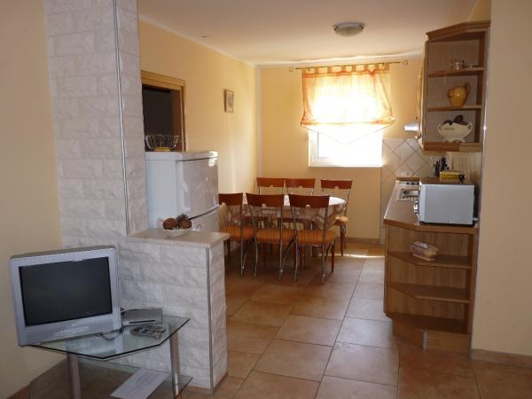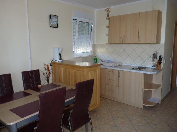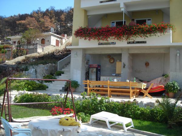 Villa Vlajina consists of 7 apartments. Each apartment has a spacious living, dining and kitchen, one or two bedrooms and a bathroom. The kitchen has a stove, refrigerator, freezer, microwave oven, coffee maker, electric kettle, pots, pottery. Ä. . The living room has a sofa and satellite TV. Woodwork in the apartments is made from natural wood (oak). The modern bathroom has a shower and tub. From the balcony and terrace you can enjoy the beautiful view of the sea. You can use the available chairs and umbrellas on the private beach. The apartments are located in the small village of Bilo, about 5 km north of Primosten, Open-air barbecue, deck chairs and parasols.