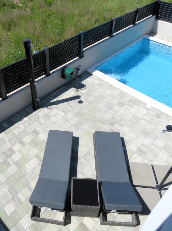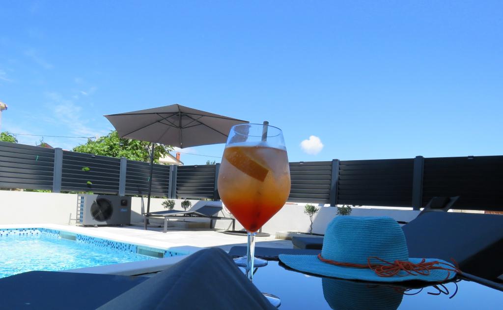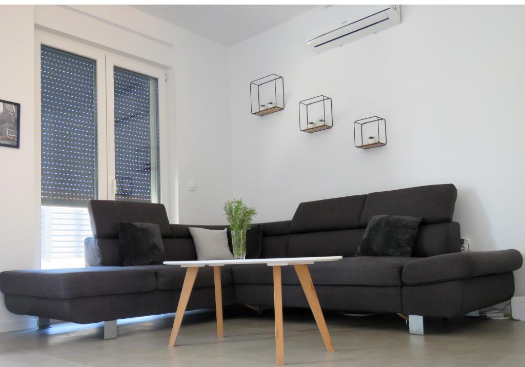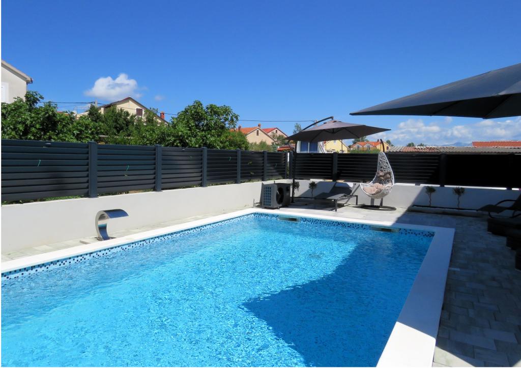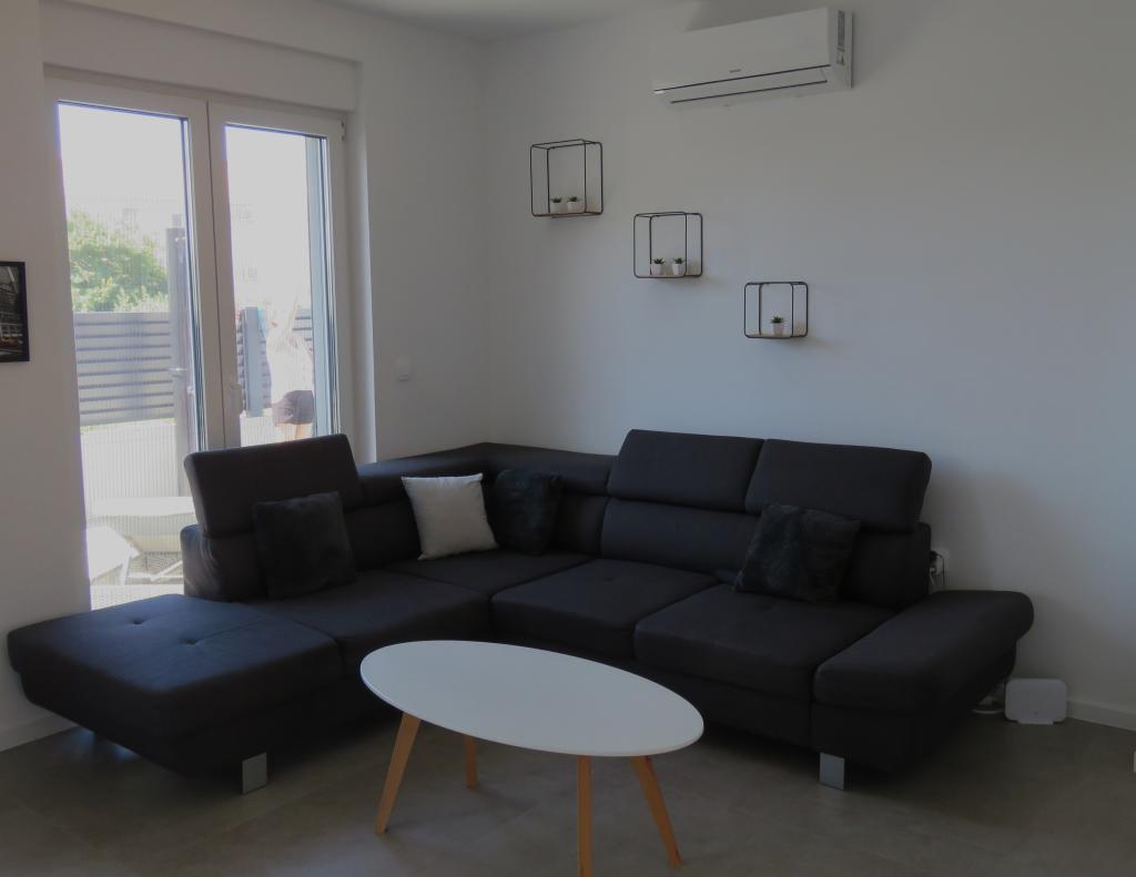 Modern apartment on two floors in a building built in 2022. The apartment is completely new and we will welcome the first guests in the 2024 season! The apartment has 3 bedrooms (6 people), 2 bathrooms, a kitchen with a spacious living room and two comfortable sofas. The kitchen is fully equipped, and the spacious terrace on the ground floor where guests can relax in the private heated pool, use the grill, or simply rest on the outdoor sofas and deckchairs... Parking is provided in front of the building, and every room has air conditioning and TV. The distance from the beach is 200 meters. Nearby there are shops, restaurants and beach bars, and in the selection of beaches you can choose between organized beaches with all amenities, or wild beaches in the pine forest for those who prefer to escape from the crowds and want privacy even in high season. Not even 5 kilometers from the apartment is one of the most famous beaches in Croatia, the Queen's Beach in Nin, which is only a few minutes away by car.