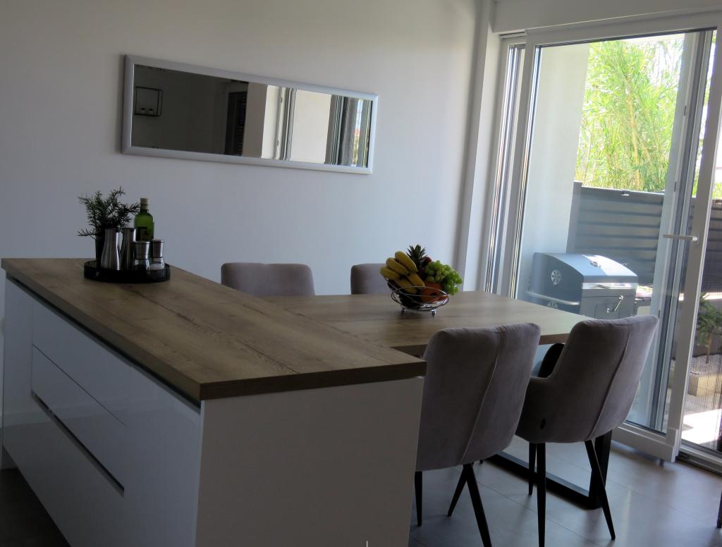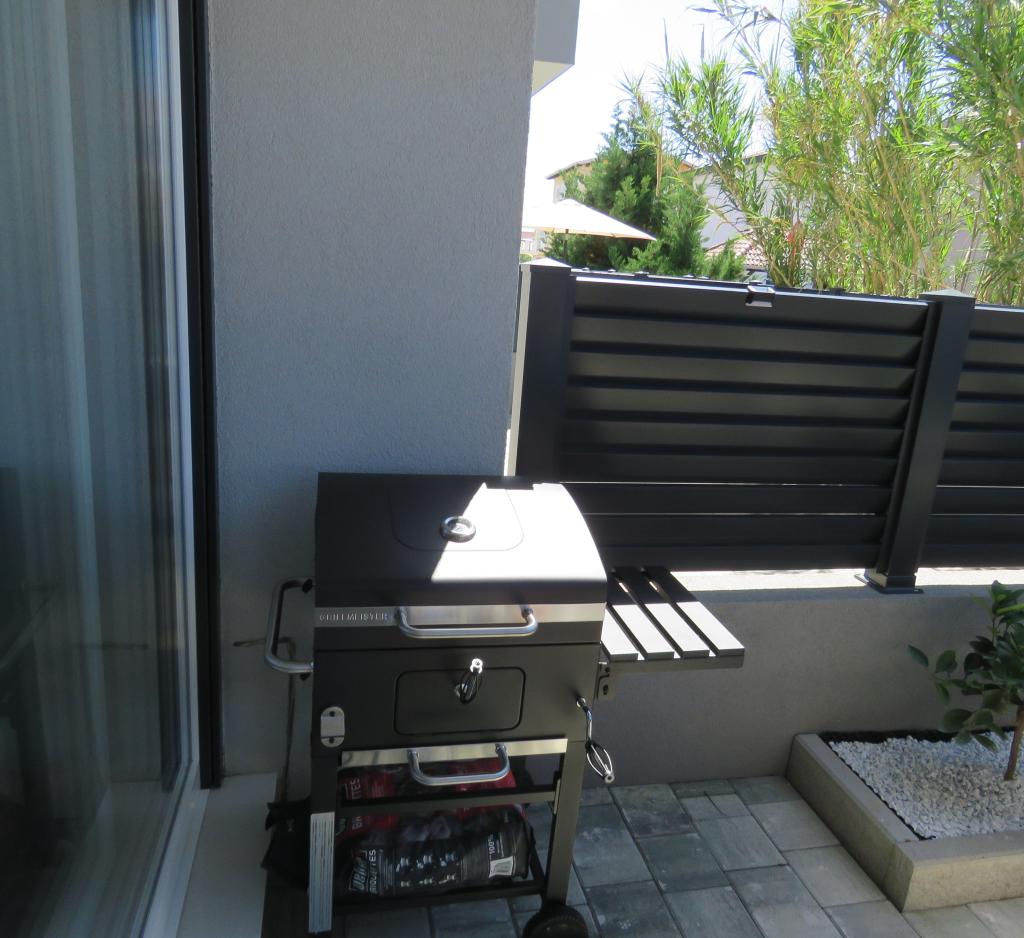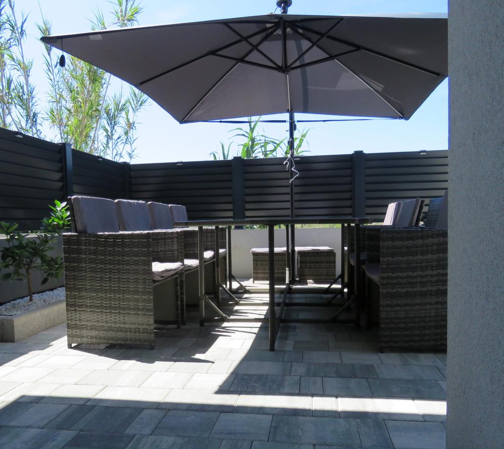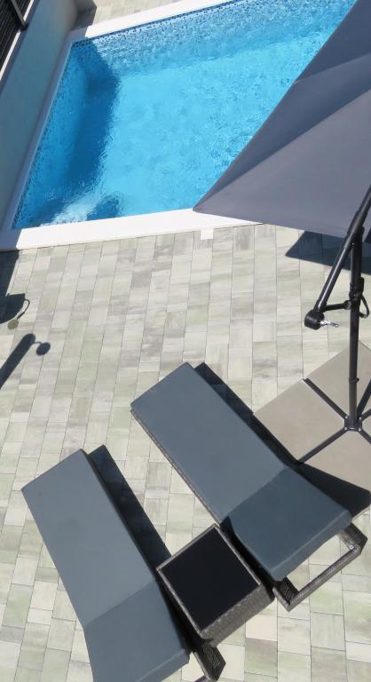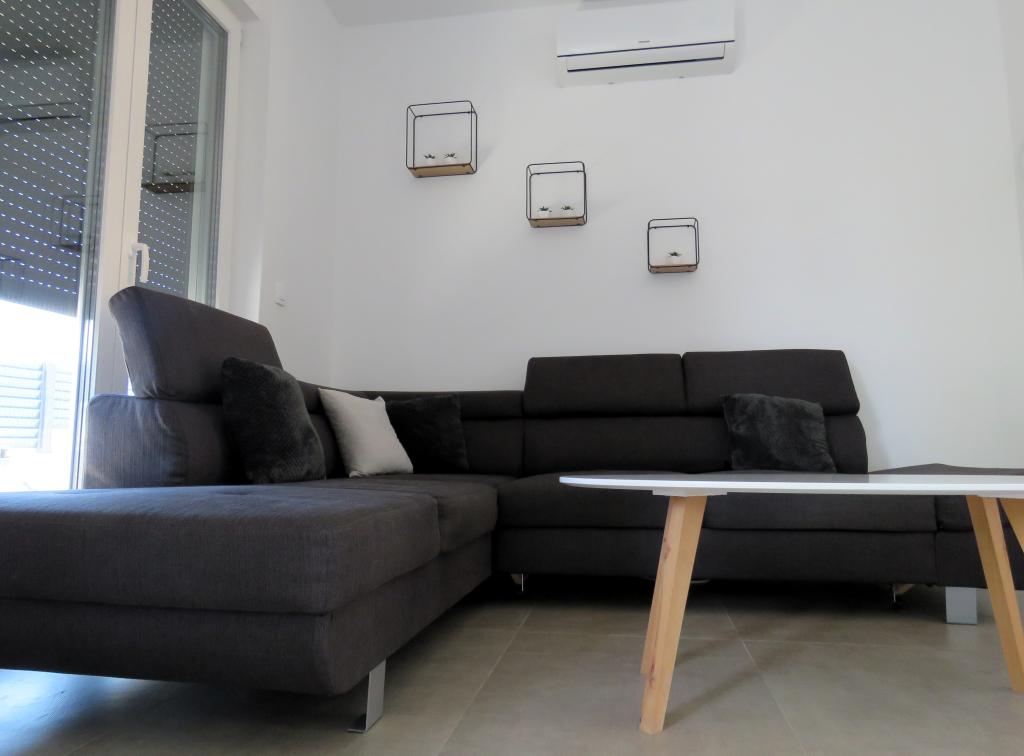 Modern apartment on two floors in a building built in 2022. The apartment is completely new and we will welcome the first guests in the 2024 season! The apartment has 3 bedrooms (6 people), 2 bathrooms, a kitchen with a spacious living room and two comfortable sofas. The kitchen is fully equipped, and the spacious terrace on the ground floor where guests can relax in the private heated pool, use the grill, or simply rest on the outdoor sofas and deckchairs... Parking is provided in front of the building, and every room has air conditioning and TV. The distance from the beach is 200 meters. Nearby there are shops, restaurants and beach bars, and in the selection of beaches you can choose between organized beaches with all amenities, or wild beaches in the pine forest for those who prefer to escape from the crowds and want privacy even in high season. Not even 5 kilometers from the apartment is one of the most famous beaches in Croatia, the Queen's Beach in Nin, which is only a few minutes away by car.
