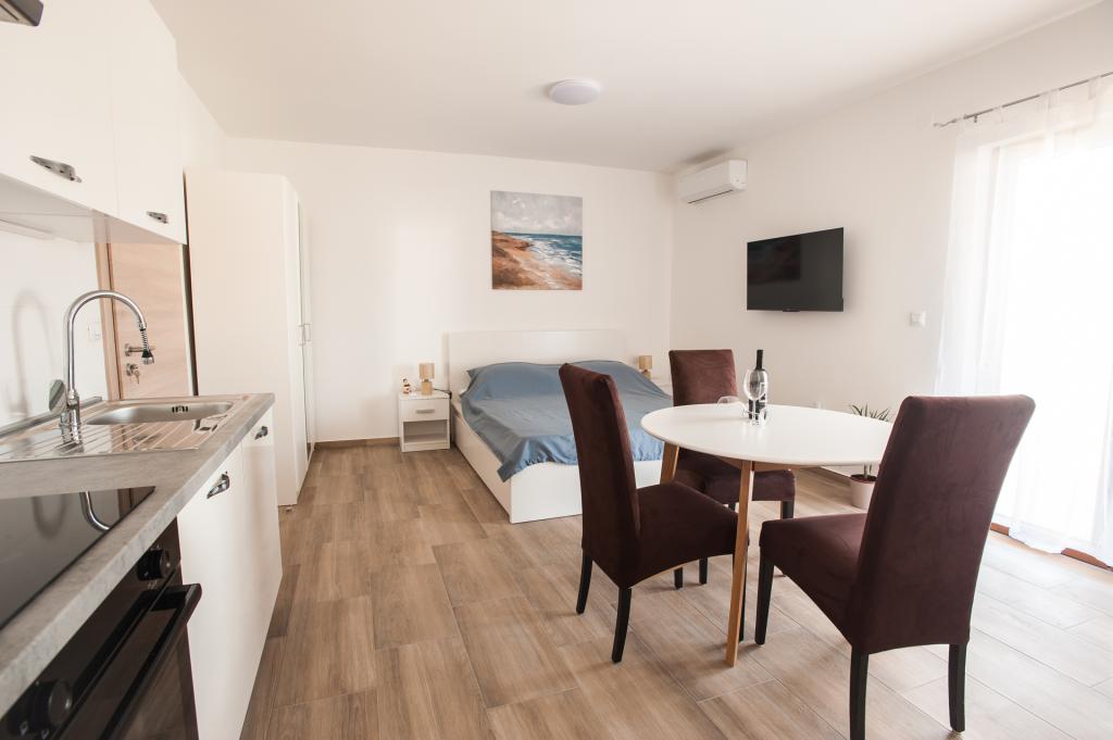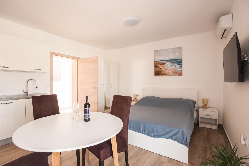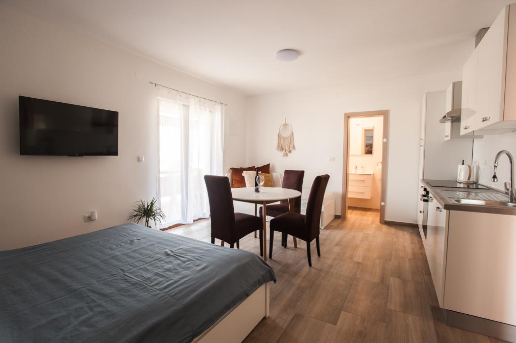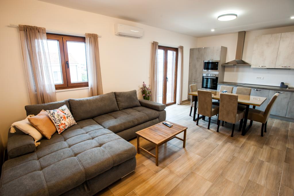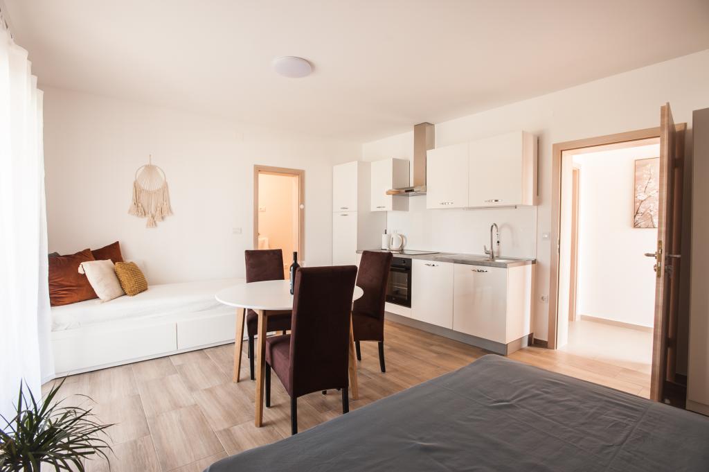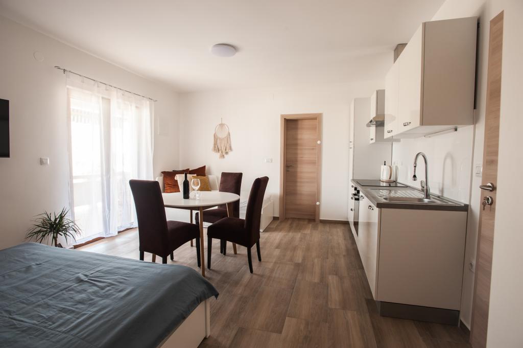 Apartment LaPrivlaka is located only 200 meters from the sea. Located on the first floor of a private house, this apartment offers exceptional comfort and privacy. Guests are provided with a separate entrance that leads to a spacious balcony equipped with comfortable seating and a clothes dryer. Inside the apartment, you will find a fully equipped kitchen with a rich set of dishes, while the dining room offers a pleasant space for meals with a TV. The private bathroom is equipped with a shower, washing machine, toilet, and hair dryer. The bedroom of the apartment exudes spaciousness and comfort, with a comfortable double bed and an additional bed measuring 80x200 cm, which can be used as a sofa or a third bed according to the guests' needs. The air conditioner allows you to adjust the temperature according to your preferences. Guests of this apartment have access to free private parking, providing them with safe and affordable accommodation for their vehicles. The apartment was completely renovated in 2023, which means that all appliances are new.