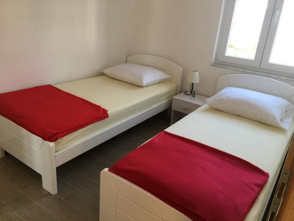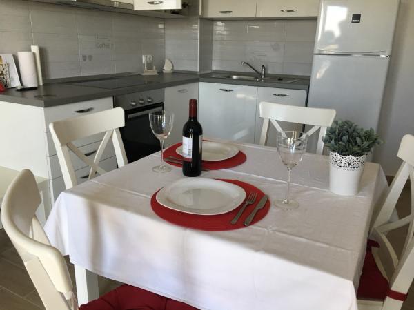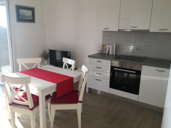 Apartment La Mare is located 5 m from the beach. The beautiful terrace overlooking the sea allows you to spend a peaceful evening and morning with the sounds of waves that will give you peace and perfect rest. Fully equipped and modern apartment in a quiet part of Privlaka. Suitable for families with children because of the proximity of the beach and quiet area as well as for young people who wish to go out because of the vicinity of Zadar, Zaton and Vira. If you have any questions regarding the booking or you are interested in more about the accommodation itself and the end of the apartment, we will be happy to assist you