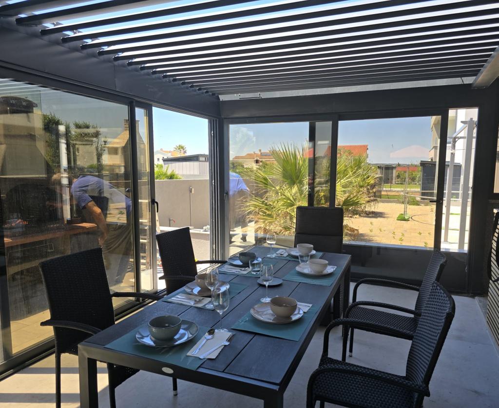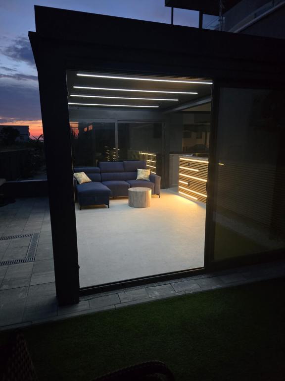 Apartment Neptun Zadar is located in Privlaka, on the ground floor of a new building. The property has one bedroom and an open floor plan kitchen with a living room, exit to the balcony (12m2) and a 60m2 yard/garden partially covered with a glazed pergola, with barbecue, parasol, solar shower and jacuzzi. There is a partial view of the sea from the yard. The facility is located a 2-minute walk from the sandy beach. Ideal for families with children.
