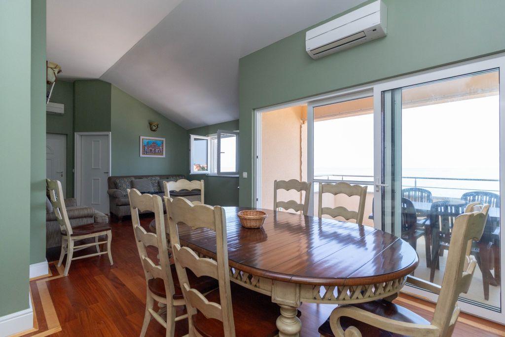 Residential tax is included in price. Booking confirmation document upon reservationThe apartment consists of two comfortable bedrooms with double beds and air conditioning, a modern bathroom, a fully equipped kitchen, and a spacious living room. A special highlight is the covered balcony with outdoor furniture and a direct sea view – perfect for morning coffee or evening relaxation. Apartment amenities: 2 bedrooms with double beds and air conditioning Living room with TV and dining area Modern fully equipped kitchen Balcony with seating furniture and sea view Bathroom with shower Free Wi-Fi and parking