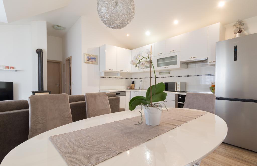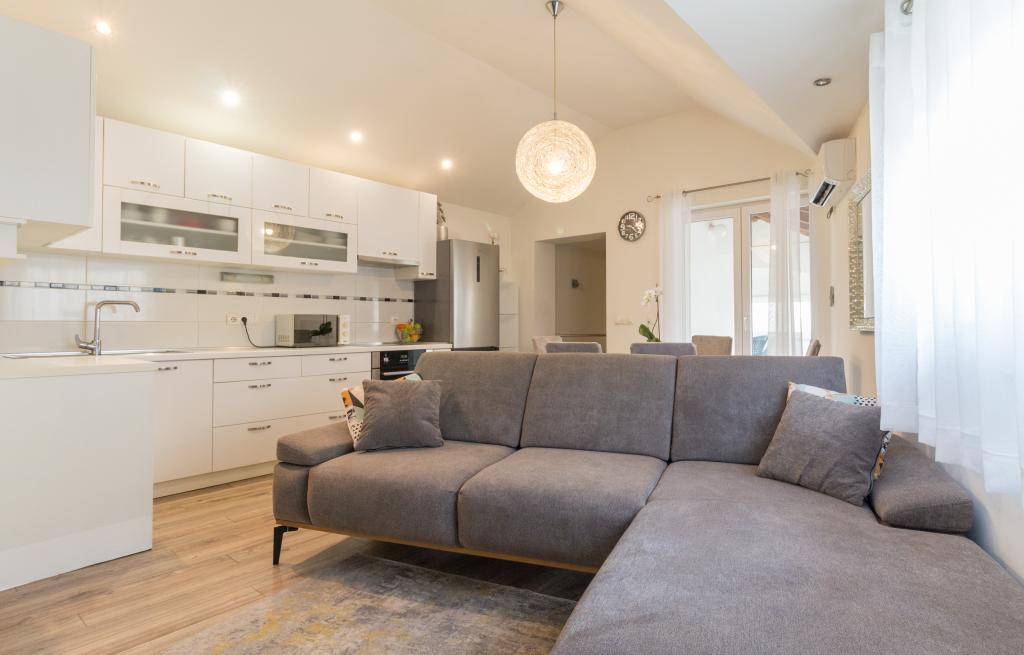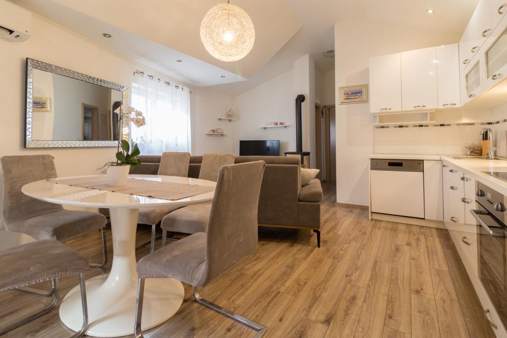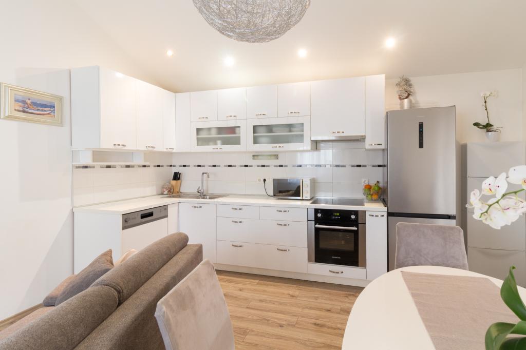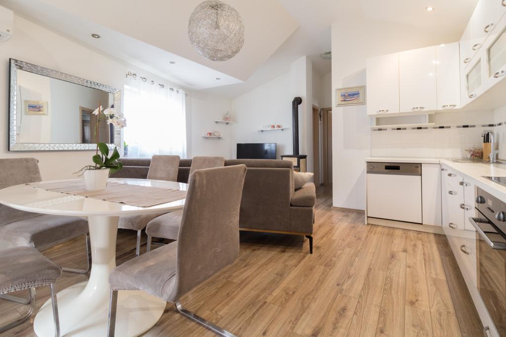 Here you can find all useful information related to our accommodation offer. The apartment is located in Privlaka only 5 meters from the beautiful sandy beach ideal for rest and relaxation. The area of the luxury apartment is 55 m2, has 2 bedrooms. The apartment has 1 bathroom and the apartment can accommodate a total of 4 people. The kitchen is fully equipped with all kitchen appliances, and the living room is extremely comfortable and modern. From the living room there is a direct exit to the large balcony where there is a sitting set, deck chairs