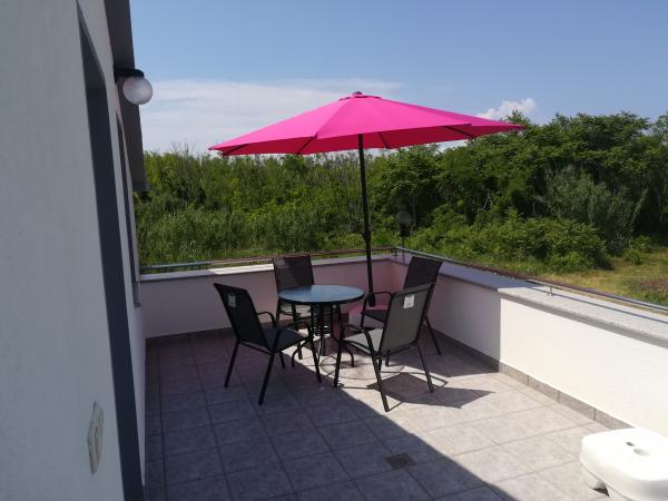 Fully equipped apartments with a terrace, large yard, with possibility of using a children's playground and a children's pool. . If you want to visit our place, you can also take our bikes (free of charge) to the beach 10 minutes walk, walk, quiet street or car for about 3 minutes. The bus station is about 200-300 meters away. Apartments have all the equipment for food preparation, bed linen, towels, mosquito nets on windows, flat screen TV (satellite program), free WIFI, air conditioning, barbecue, covered parking, washing machine, outdoor shower. Important: There is a possibility of LONG TERM EXTRACTS IN EXCESSIVE CONDITIONS.