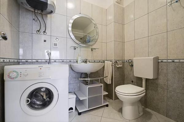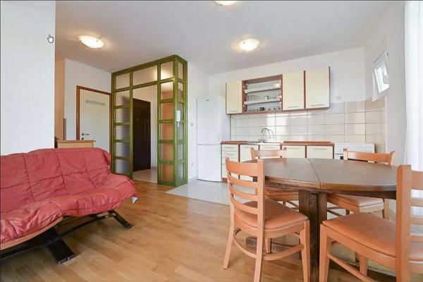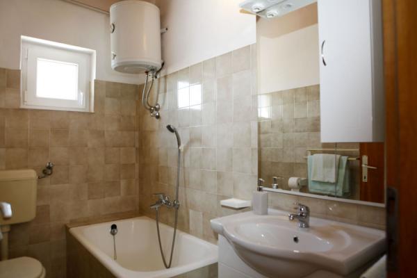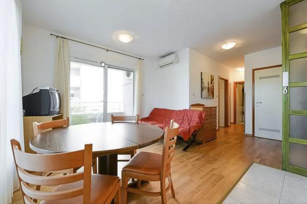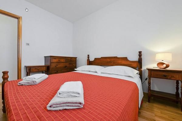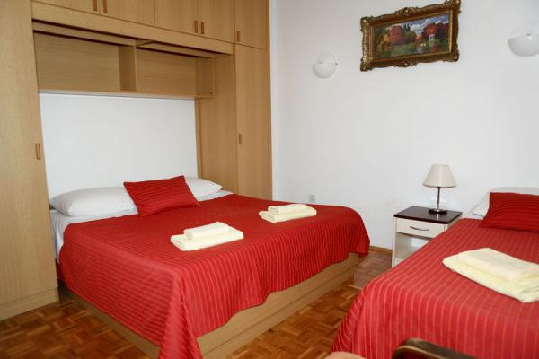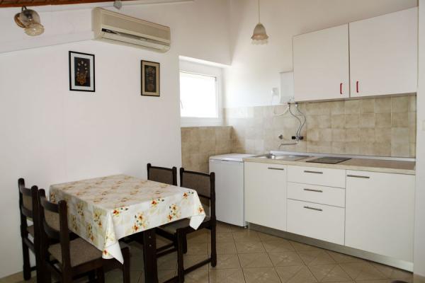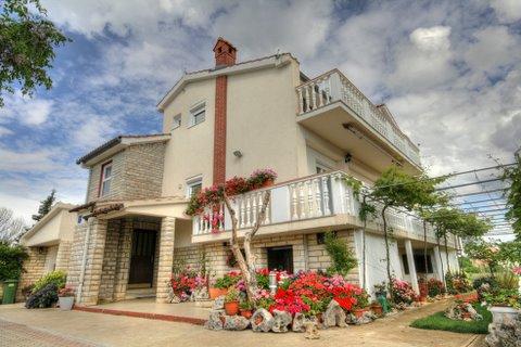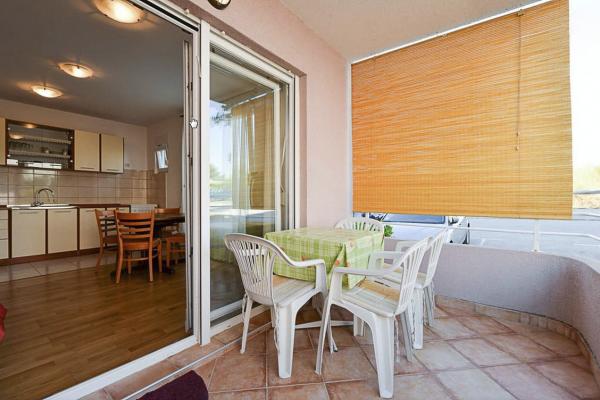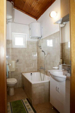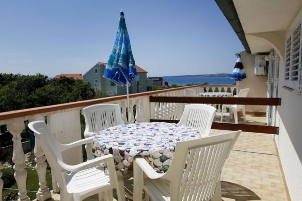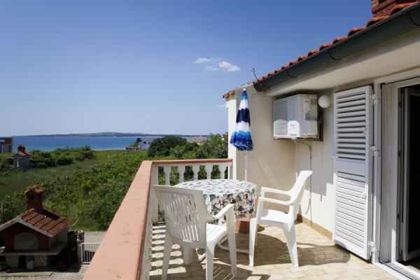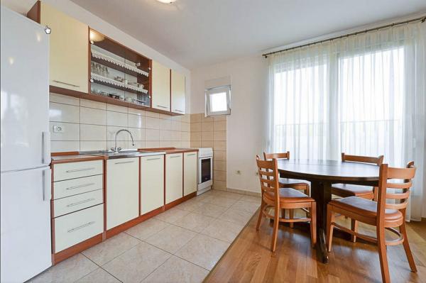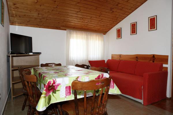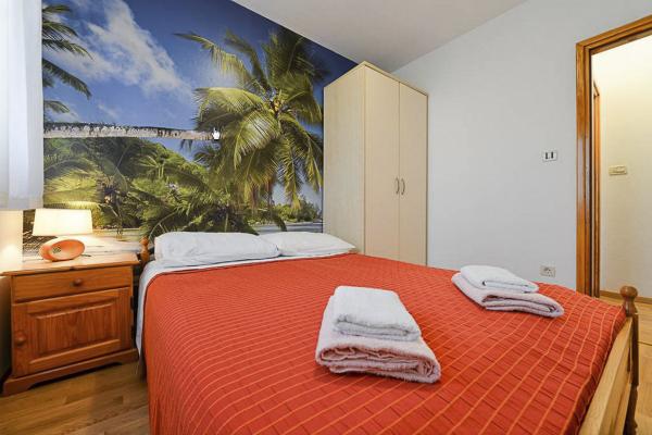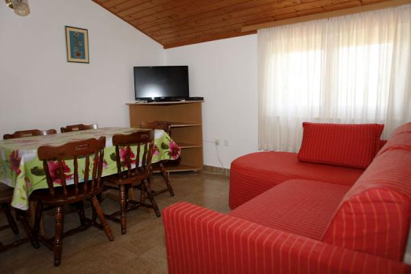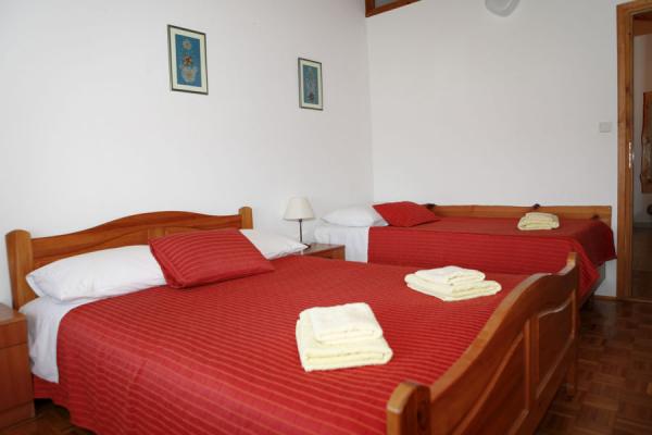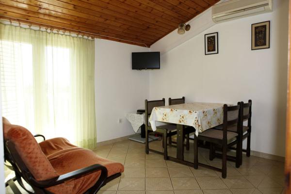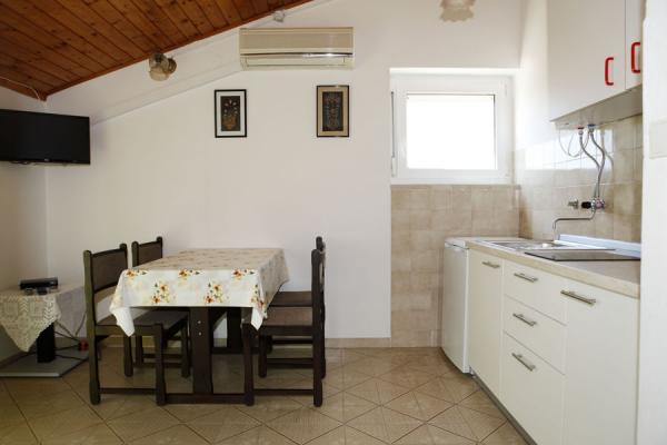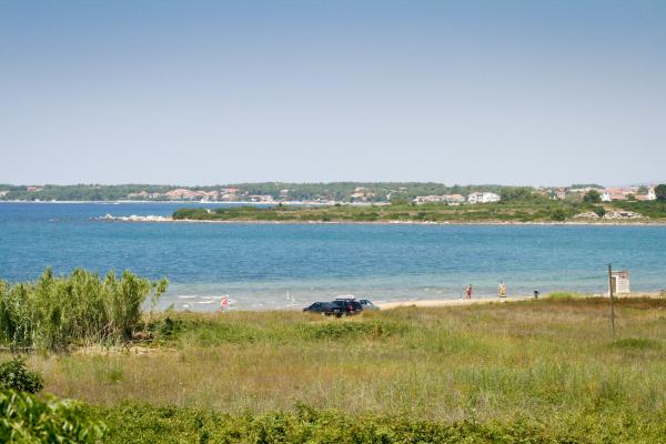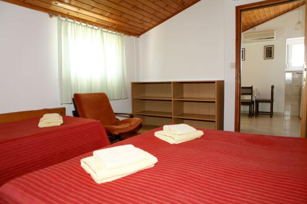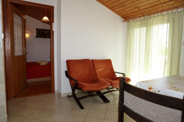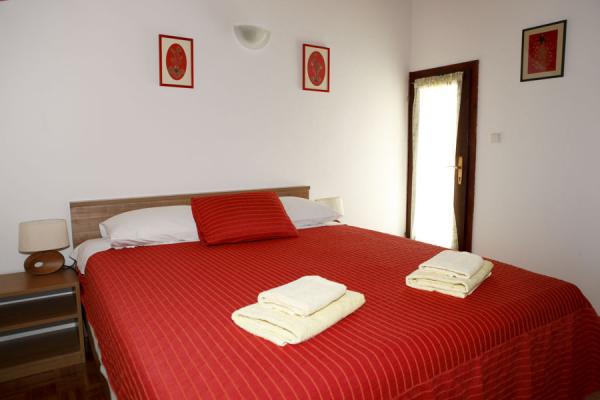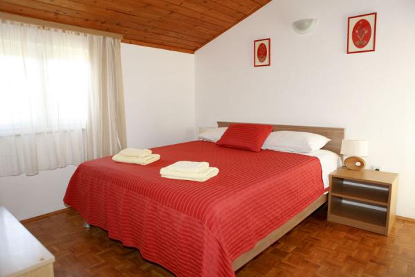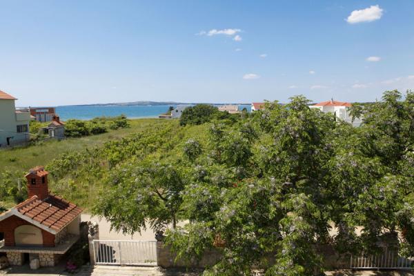 Apartments Soline are situated in the fishing village of Zadar, 25 km northwest of Zadar. The house is situated in a quiet area of Zadar, surrounded by nature, overlooking the sea on the south and east, and the sea and the Velebit mountain from the north side. This area is known for its sandy beaches and clear shallow waters, ideal for young children. The house is 5 minutes walk to the sandy beach, 10 minutes to the smaller stores, and a half-hour walk to the center. Within the garden is neatly landscaped courtyard with an abundance of flowers, lawn and garden hosts. In the backyard grill house, and covered parking which are available to guests. The apartments are designed for stays of 3 to 5 persons (40m2 and 60m2). Apartment 2 1 Description: 40 m², first floor room with bed for 2 persons additional bed for 1 person kitchen, dining room bath / WC Satellite TV, air conditioning balcony, furniture, parasol bedding, towels, cutlery and cooking, hair dryer