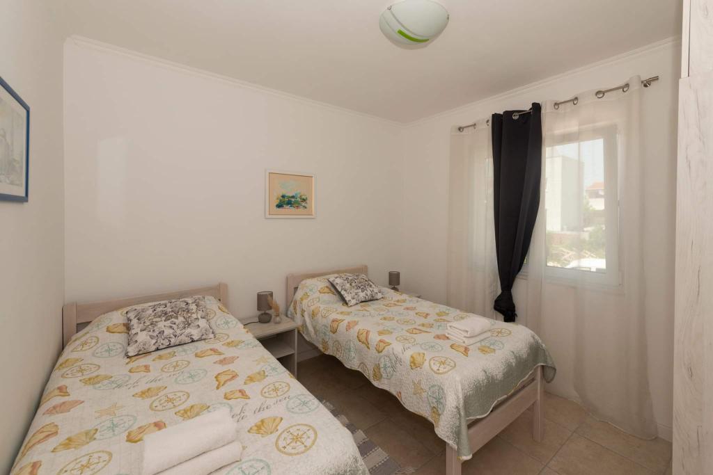 Fully equipped apartments. Accommodation capacity: two bedroom apartment (for 6 people) one bedroom apartment (for 4 people) Located on the beach (1min walk) in a quiet village Privlaka. Ideal for families with children. The beach has facilities for children, playground, pedal boats, cafe, restaurant, shop, fast food ... 20 min by car from the city center 30 min by car from the airport