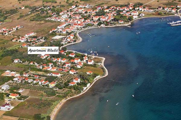 Apartments *** Bilusic consists of three apartments for 4+1 people. The apartments are located in a private house located in a quiet bay Škrapavac between Privlaka and Zaton (1km). Apartments are located 30 meters from the beach. Every apartment consist of two bedrooms , kitchen, dining room , living room , bathroom and terrace. Each of our apartments is fully equipped and has a separate entrance, terrace and its own parking lot, barbecue and an outdoor shower. The apartments are equipped with air conditioning, satellite TV, fridge + deep-freezing, microwave, grill, internet.