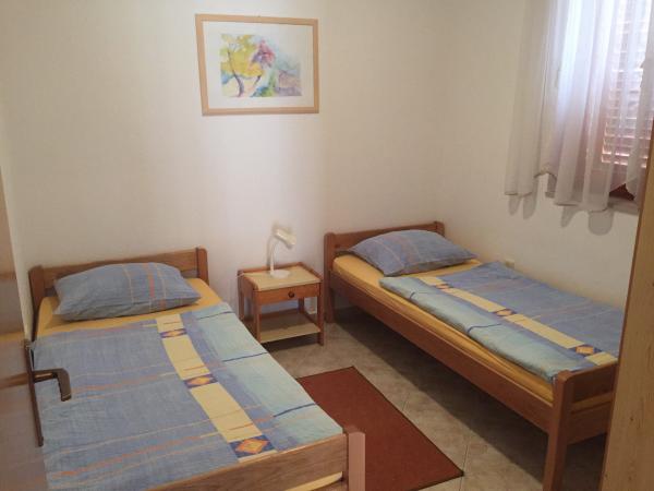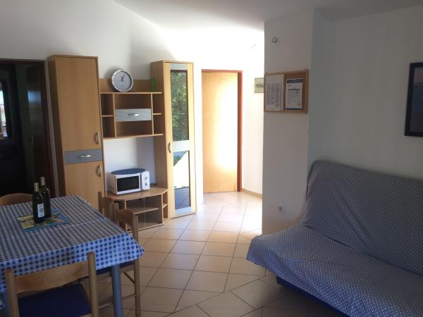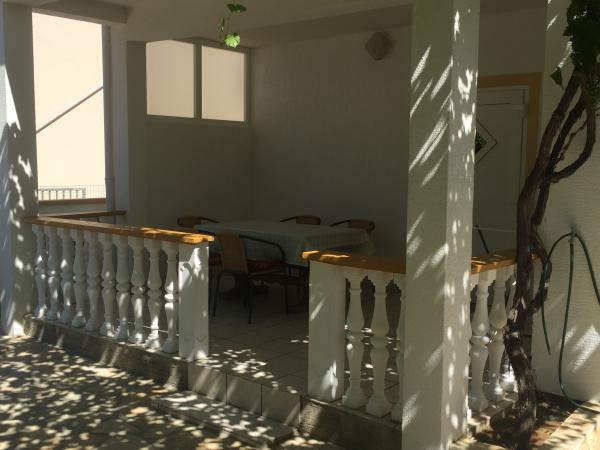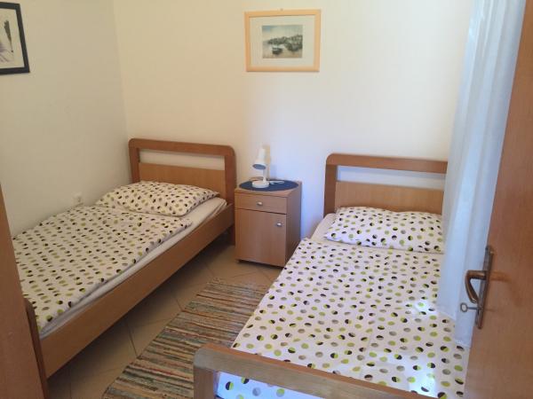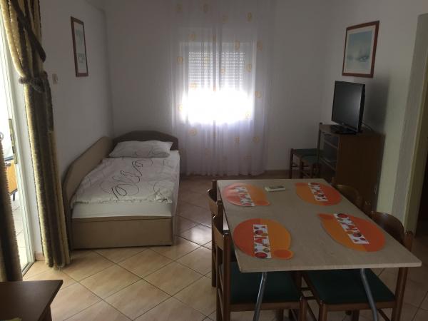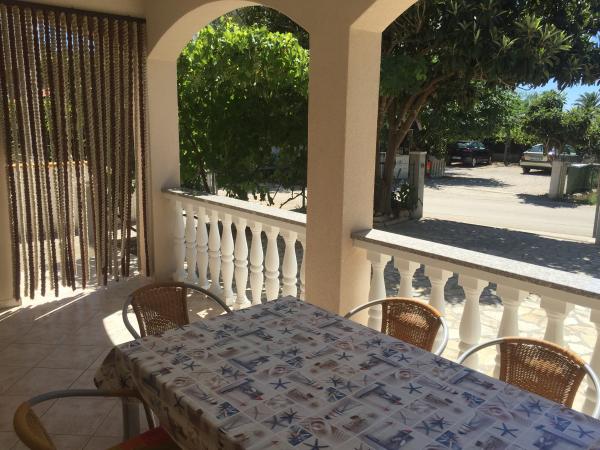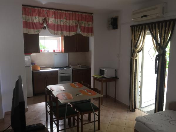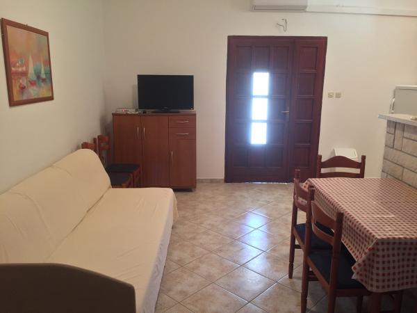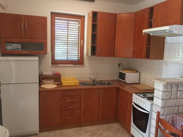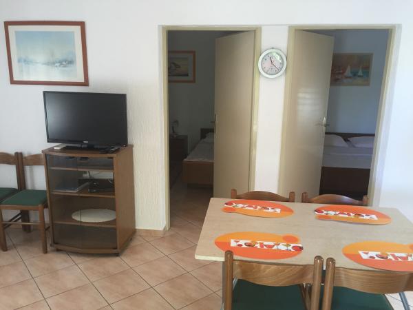 We have booked a apartment No.2. Neat and clean apartment, with everything you need. They even have their own parking space, which was very important to us, and the beach is 30 meters far wich was absolutely fantastic. In the yard, the owner has a small stew with brandy that are great. Ideal for family with small children.