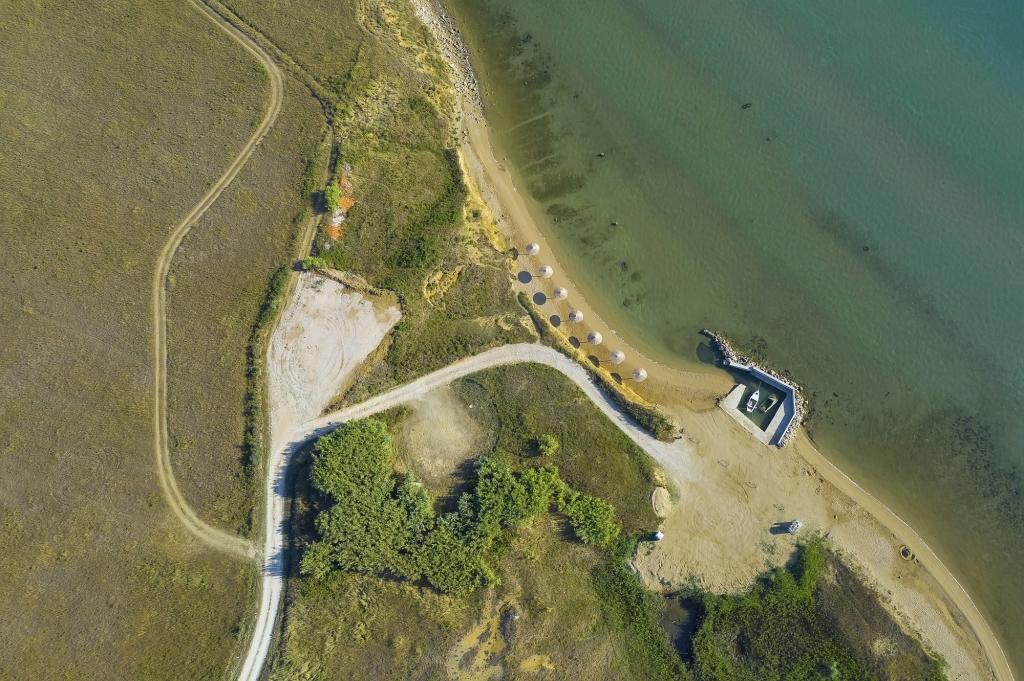The facility is located on a sandy peninsula with sandy beaches and shallow sea depths, which results in warmer sea for swimming. The first two sandy beaches are 300m away, so there is no need to use a car. Within a 4-kilometer radius on all three sides of the Privlaka peninsula, it is possible to find a quiet place for swimming in various wind directions. The large and spacious grassy yard is mainly a playground for children and adults. The swimming pool is overflowing on two sides. Each apartment has a secured parking space under a hard-roofed parking lot.