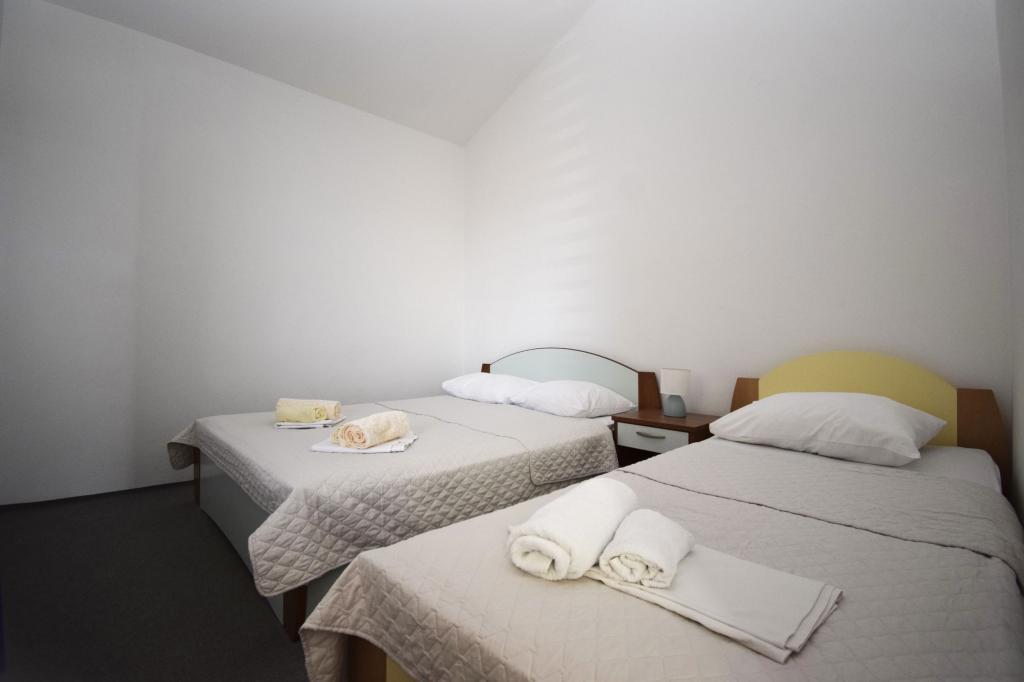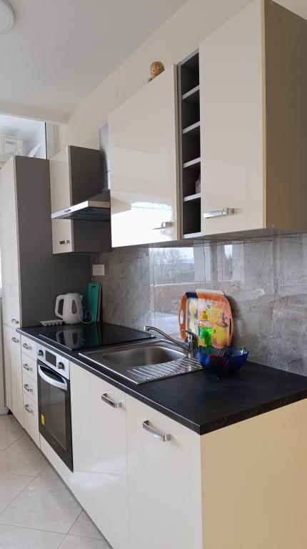 The house is located second row to the sea, in a quiet residential area. All apartments have balconies with a direct view of the sea. There is also a sports field and a children's park in the immediate vicinity.
