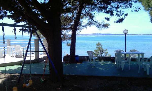 Skoblar apartments are located in Privlaka, 20 km from the city of Zadar. The house is located by the sea (5 meters away from the beach), which can lead the way through the spacious garden. The beach is sandy, with little pebbles, suitable for children and adults, equipped with chairs and partially in the shade of pine trees. Along the beach there are tables and chairs and swings for children. Part of the beach is due to accessibility. At guests disposal is a large garden where the outdoor grill, outdoor seating, mini playground, deck chairs and tables on the beach. Parking is provided.