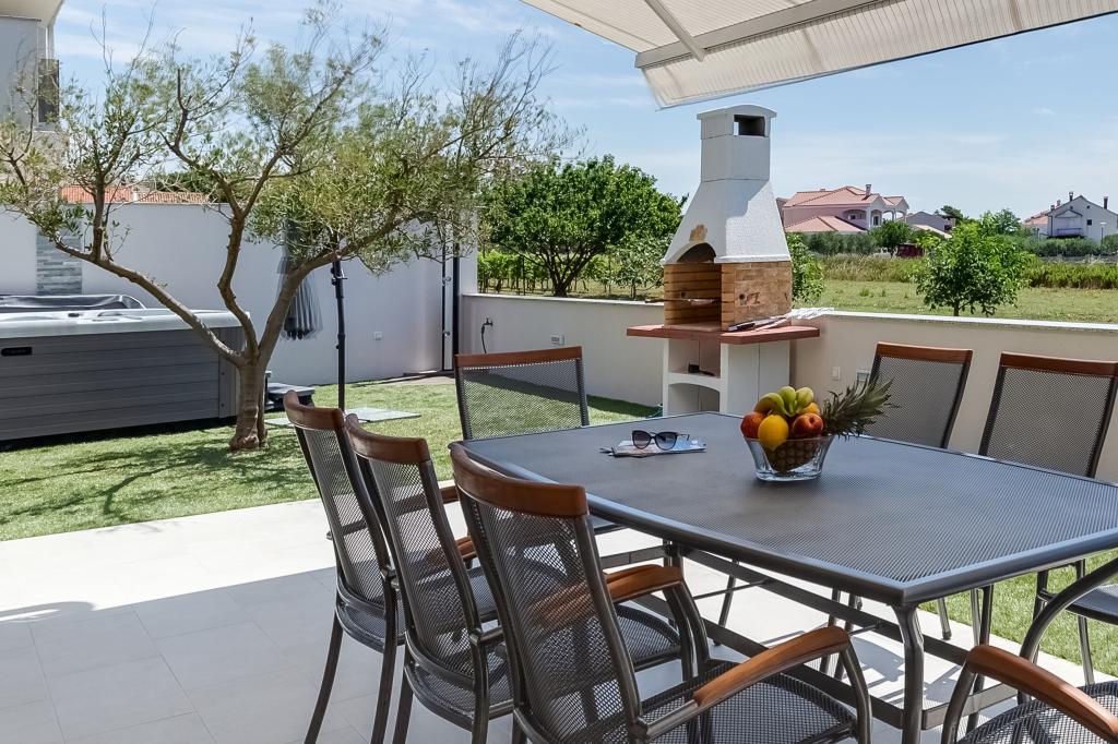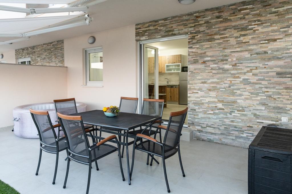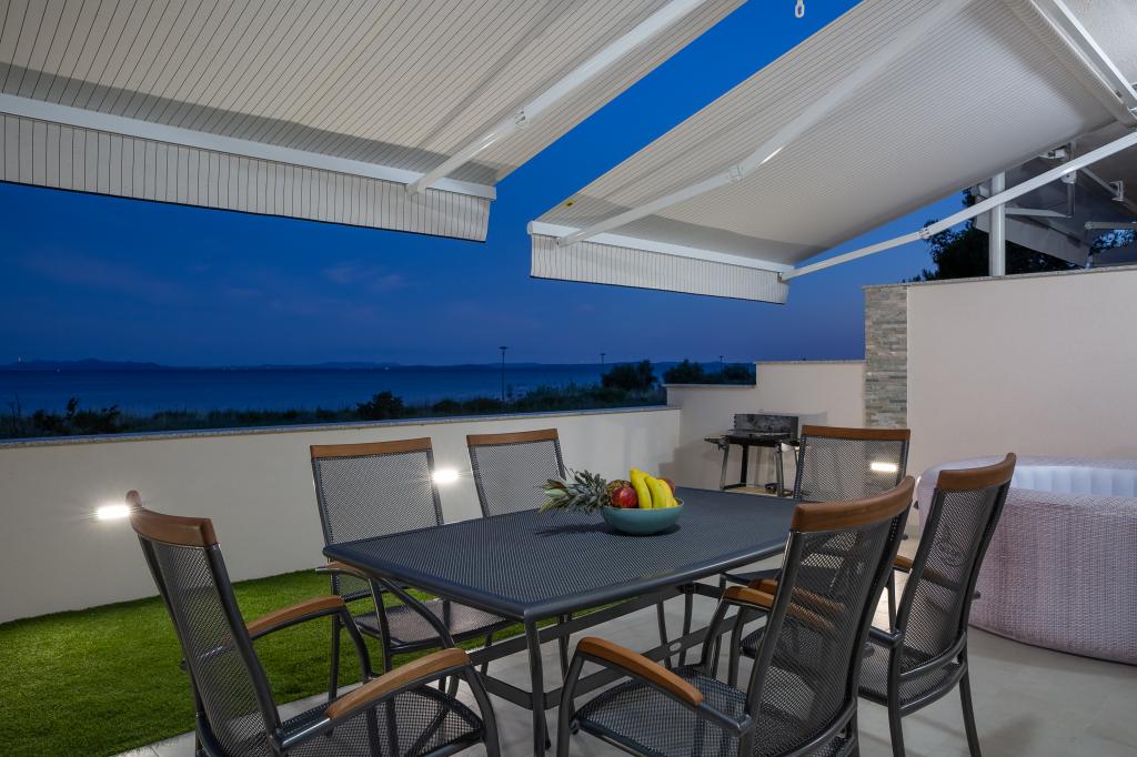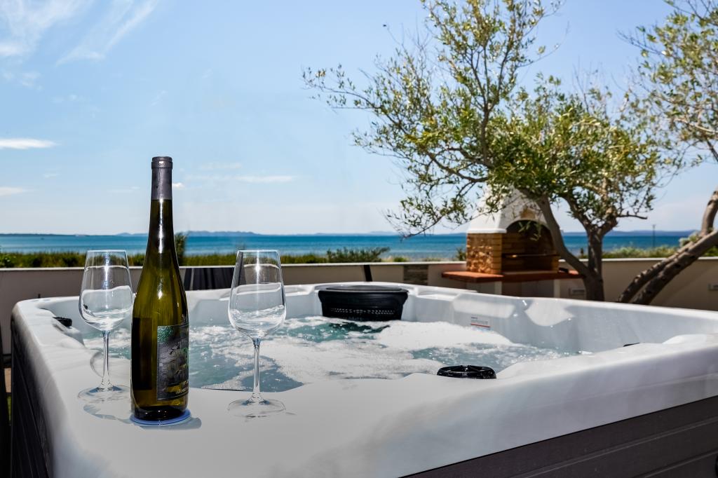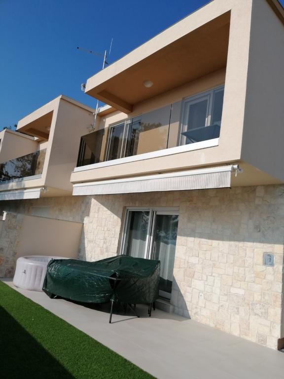 Brand new building (three houses in a row), with separate courtyards, unique position along the sandy beach in Jazić Bay, high standard of decoration and comfort; with hydromassage pools in the yard (if you don't like 30 meters to the sea or you like bubbles ...) ... it's all there just to make your reality better for a while :-) Let the children run around the yard without fear and welcome to the right resting place ...