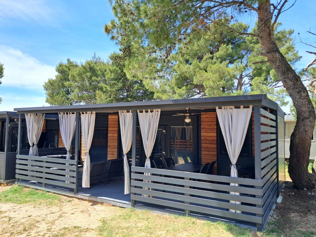 Mobile homes, Dalmacija Campsite, Privlaka Houses for 4 and 6 people. Distance from the beach 50–150 m Nearby Nin – 4 km and Zadar – 20 km View on Google Maps: https://maps.app.goo.gl/bk4oYG2X6VjNJgyf8?g_st=ac What awaits you in the houses? ️ Fully equipped and air-conditioned ️ Smart TV (Netflix, IPTV) + Wi-Fi ️ Dishwasher, barbecue, private parking
