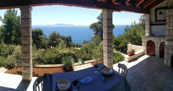 Apartments Ana are located on Prižba in the village of Vinačac in a pine forest, in a very quiet environment. The apartments are decorated with an extraordinary view of the open sea and islands. The surroundings of the house are nicely decorated. Access to the house is via a concrete staircase. It consists of two new apartments for a relaxing holiday in nature. The beach is under the house.