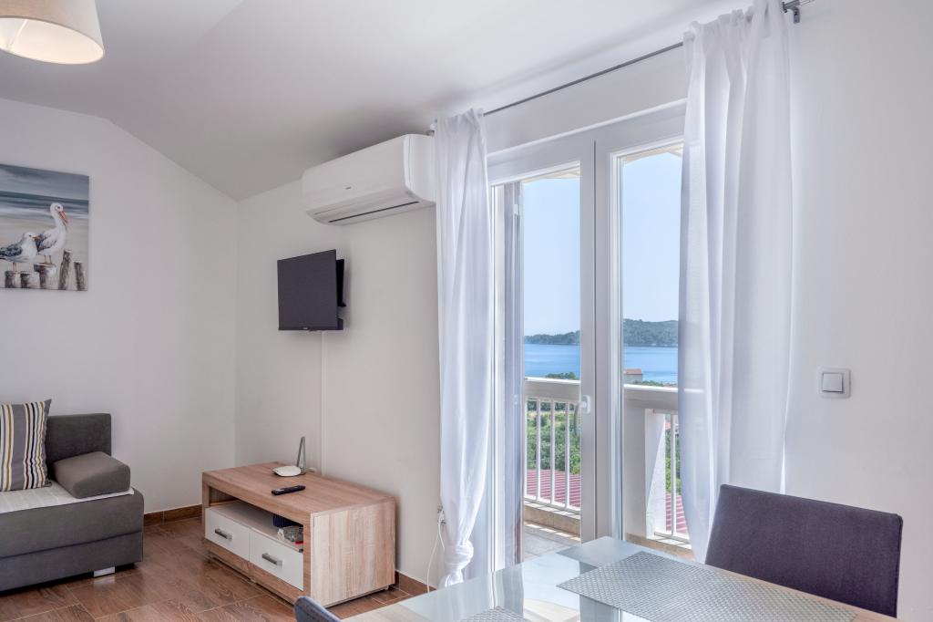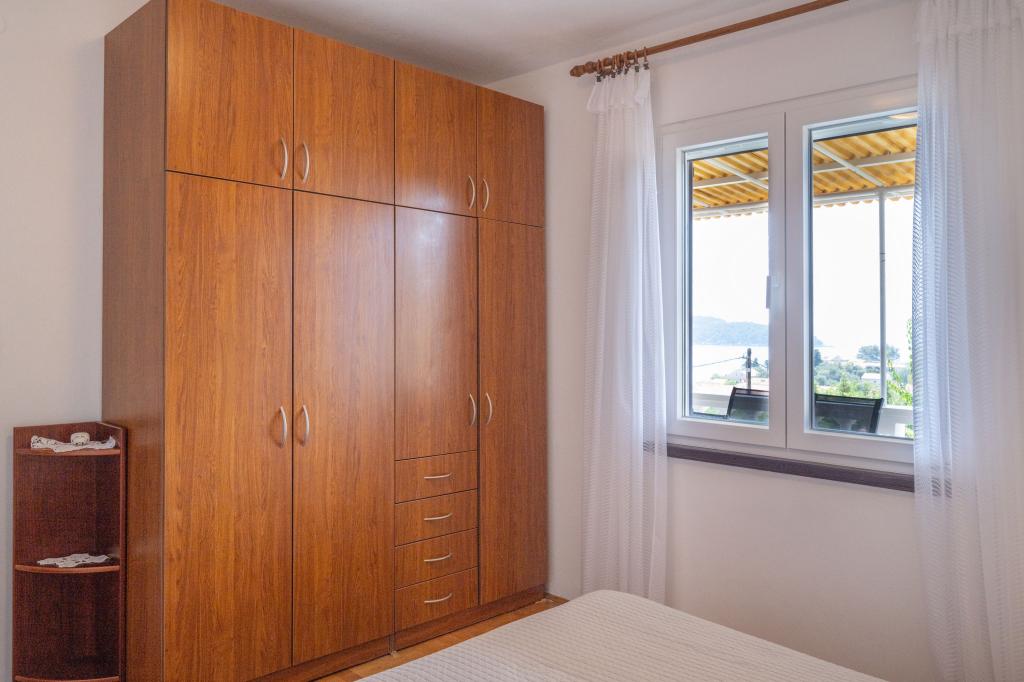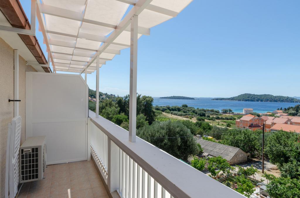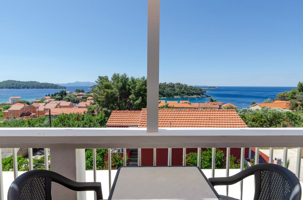 Prižba apartments Bumba are private accommodation on the island of Korčula, in the town of Prižba with 3 apartments. They are located 100 meters from the beach. Near the beach type žal. The apartments have air conditioning, internet, barbecue, parking. The balcony offers a beautiful view of the Ratak peninsula and small islands. Nearest beach (m): 100 Type of nearest beach: concrete slabs, žal Distance to the nearest pebble beach (m): 100 Town center (m): 100 Restaurant (m): 100 Shop (m): 300 Post office: Blato, 10km Ambulance: Blato, 10km Ferry port: Vela Luka, 17.5km Apartment no. 1 is a large apartment with 2 bedrooms, and air conditioners are located in each room.