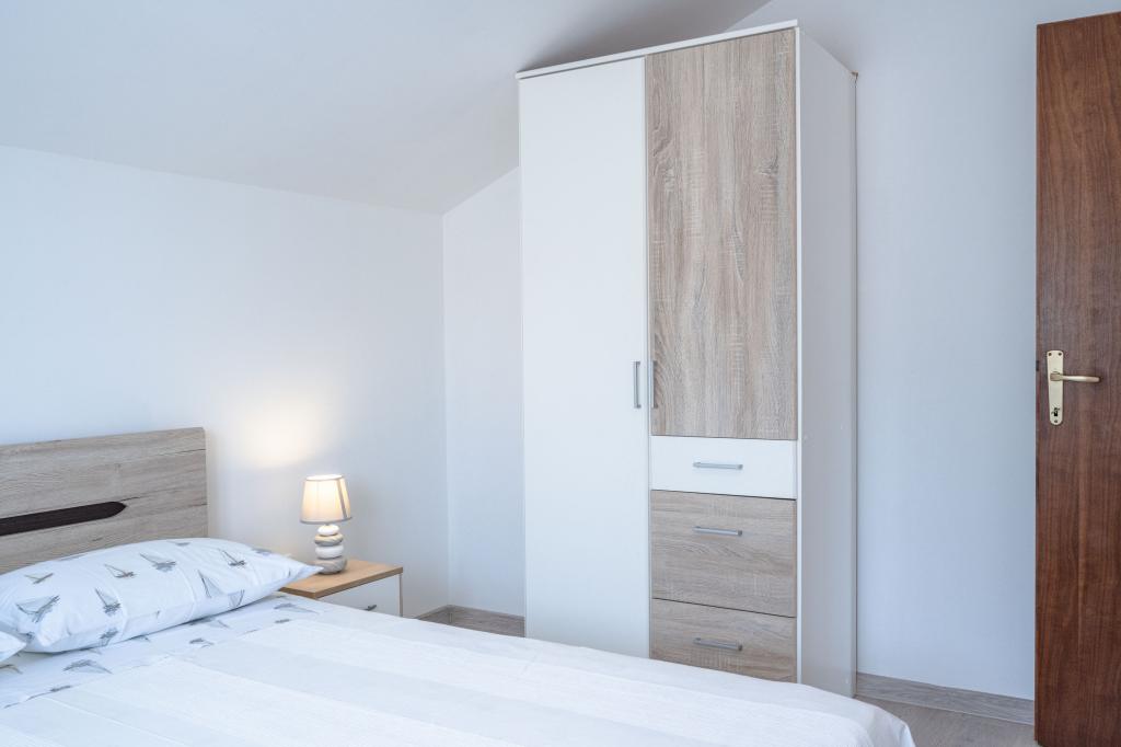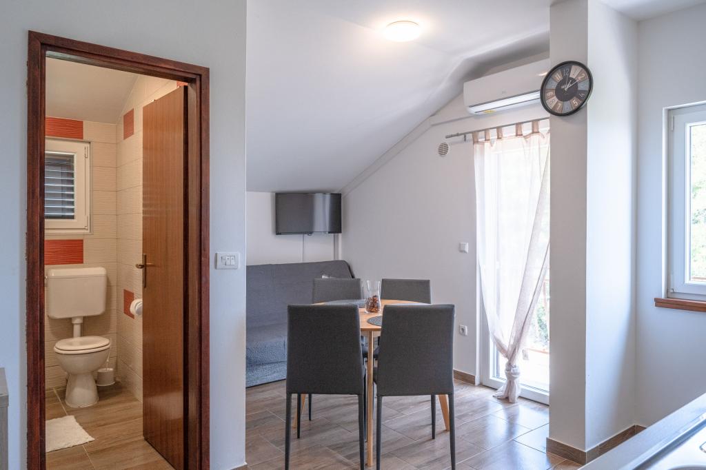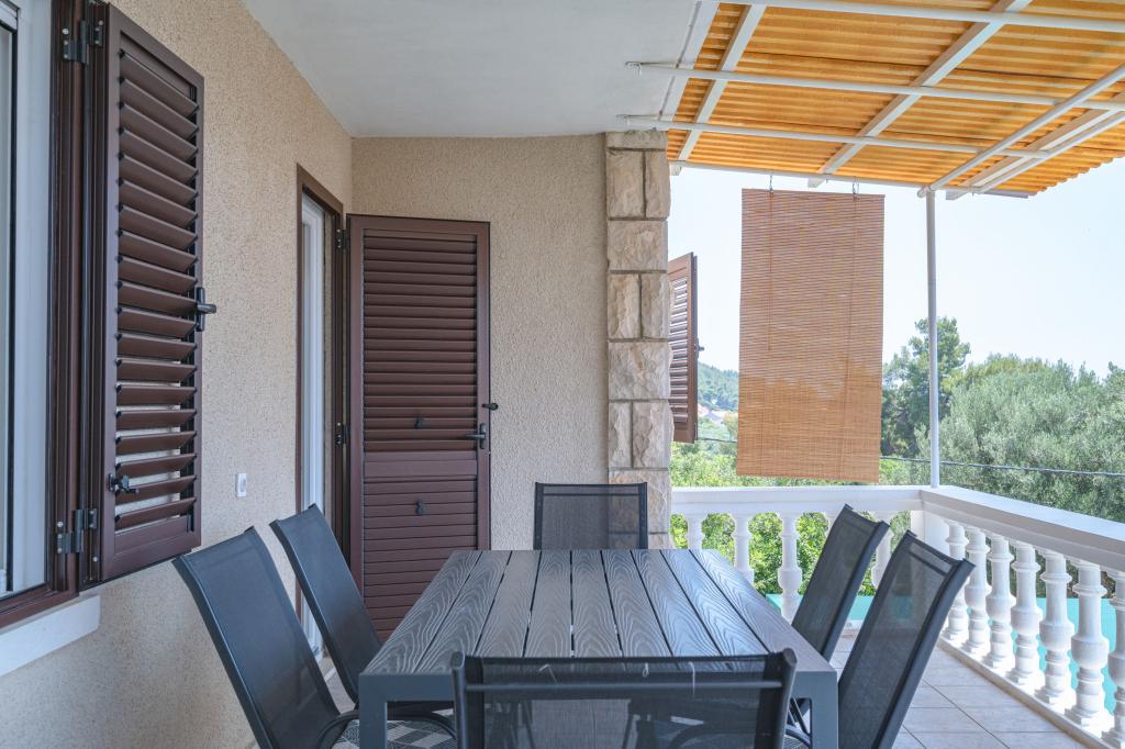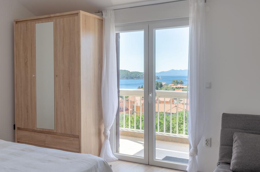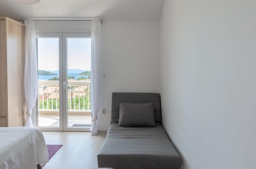 Prižba apartments Bumba are private accommodation on the island of Korčula, in the town of Prižba with 3 apartments. They are located 100 meters from the beach. Near the beach type žal. The apartments have air conditioning, internet, barbecue, parking. The balcony offers a beautiful view of the Ratak peninsula and small islands. Nearest beach (m): 100 Type of nearest beach: concrete slabs, žal Distance to the nearest pebble beach (m): 100 Town center (m): 100 Restaurant (m): 100 Shop (m): 300 Post office: Blato, 10km Ambulance: Blato, 10km Ferry port: Vela Luka, 17.5km Apartment no. 1 is a large apartment with 2 bedrooms, and air conditioners are located in each room.