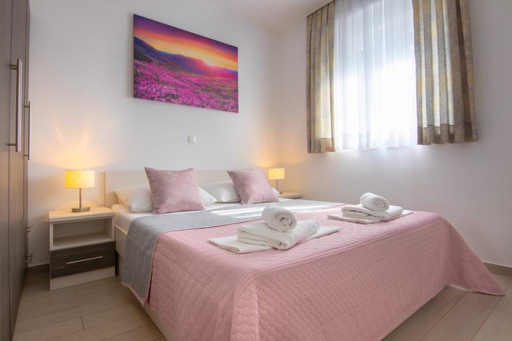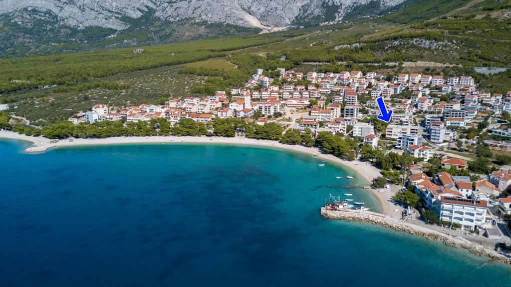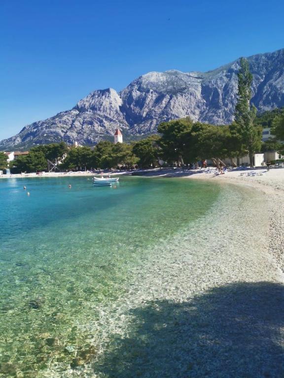 Apartment "Krissi" is located in Promajna. Only 50 m away from the sea and a beautiful pebble beach rich in natural shade, a market, restaurants and cafes. It is connected to Baska Vod by a promenade through a wonderful pine forest. Makarska is 6 km away. Apartment Krissi (2+2) is fully equipped and contains 2 bedrooms, living room with kitchen with dishwasher, refrigerator, washing machine, safe, TV, WIFI/Internet, bathroom with shower and hair dryer. Balcony/ Loggia with with a view of the sea.