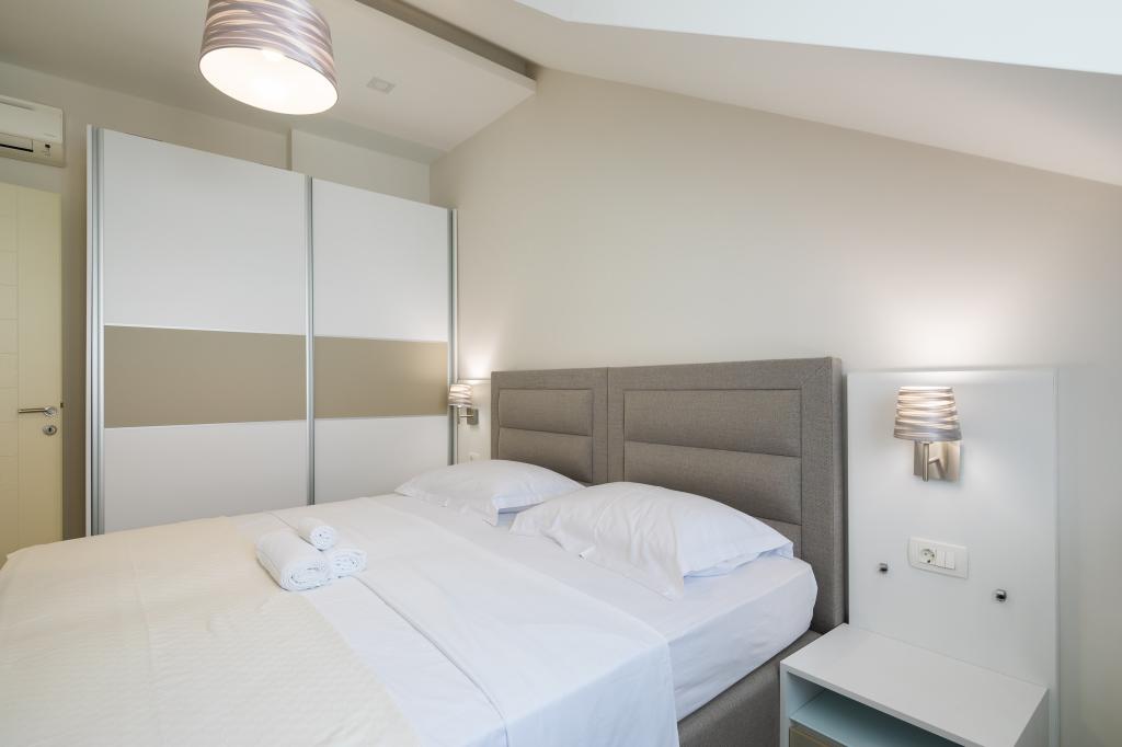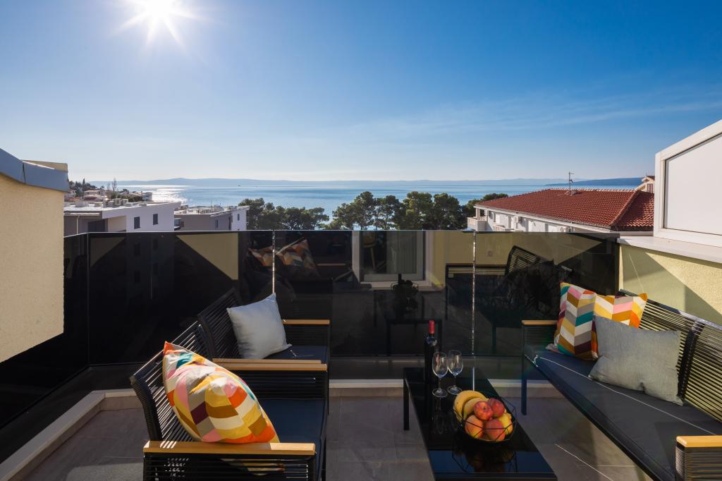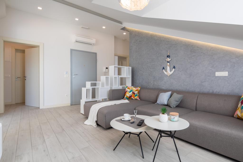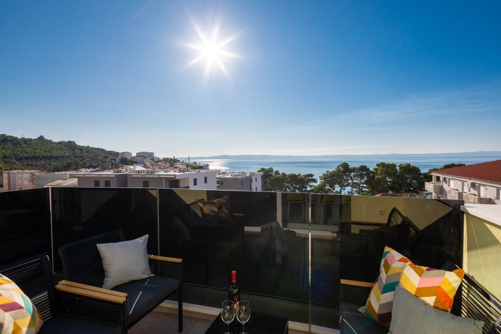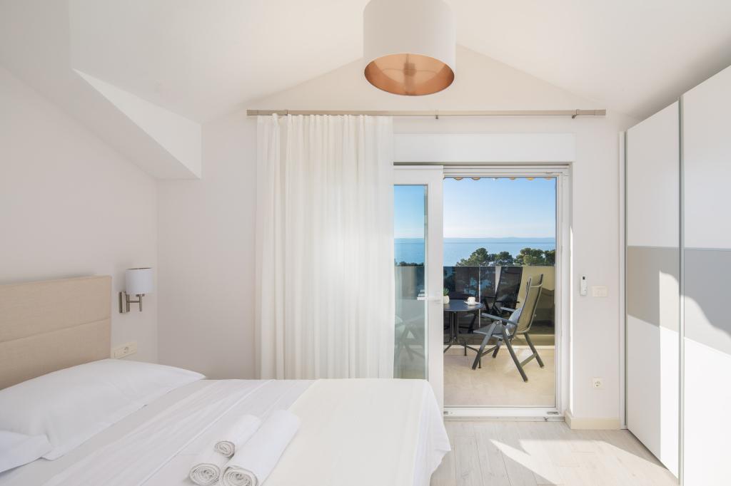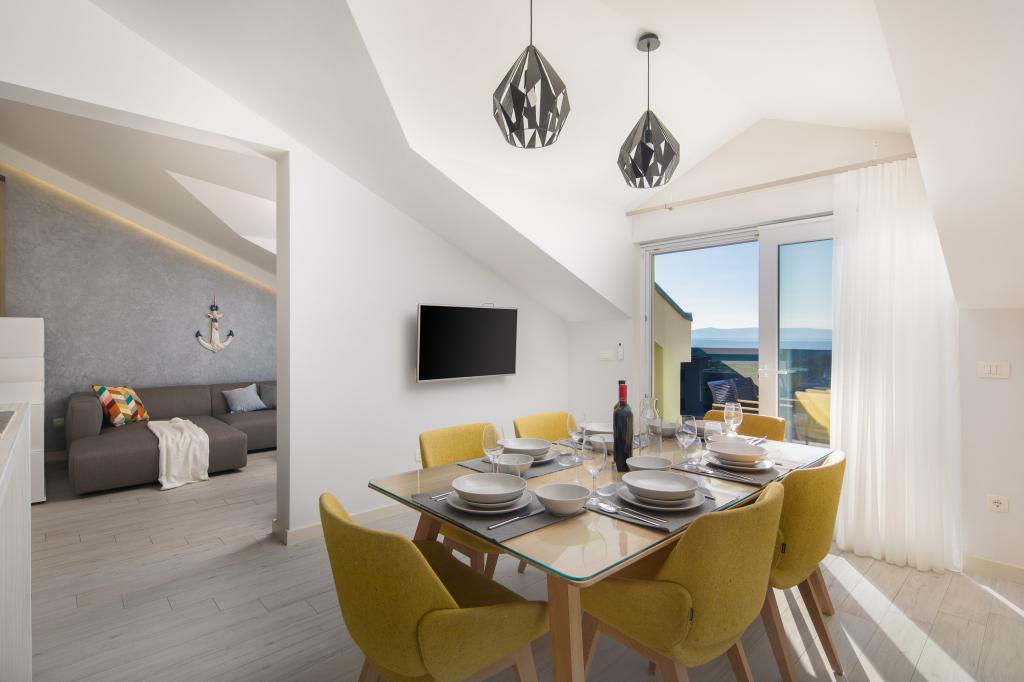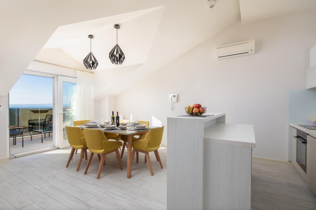Penthouse Potter is a modern apartment with 3 bedrooms and 3 bathrooms. The spacious kitchen offers great equipment. The balcony offers a view of the sea. It is located 50m from the beach in Promajna. There are 2 parking spaces next to the building.