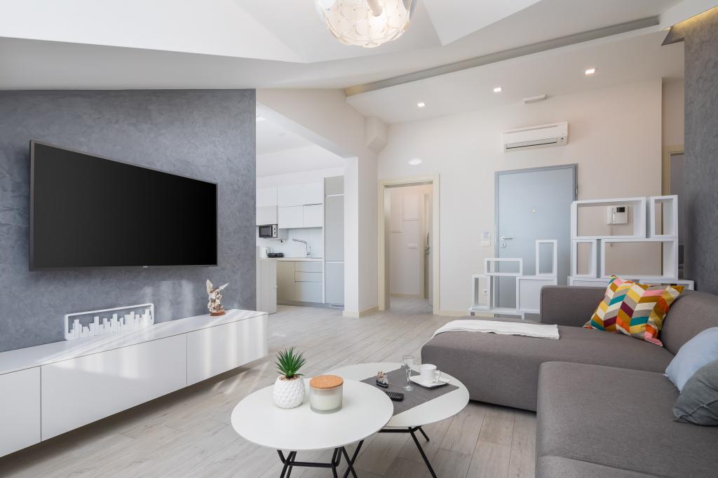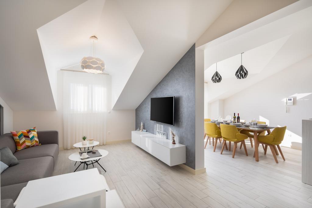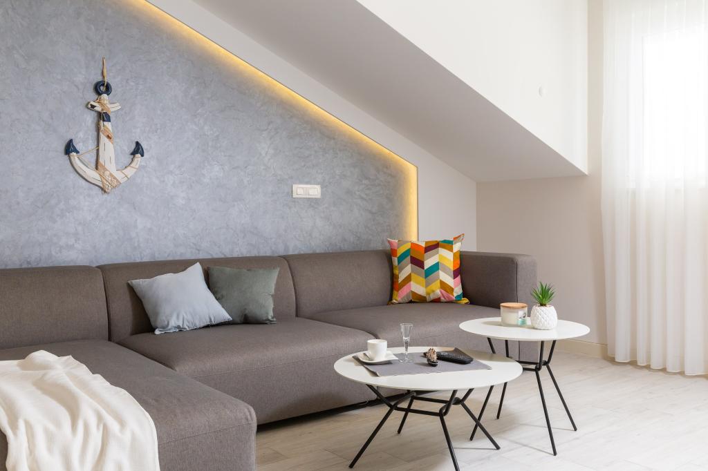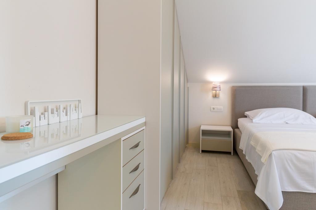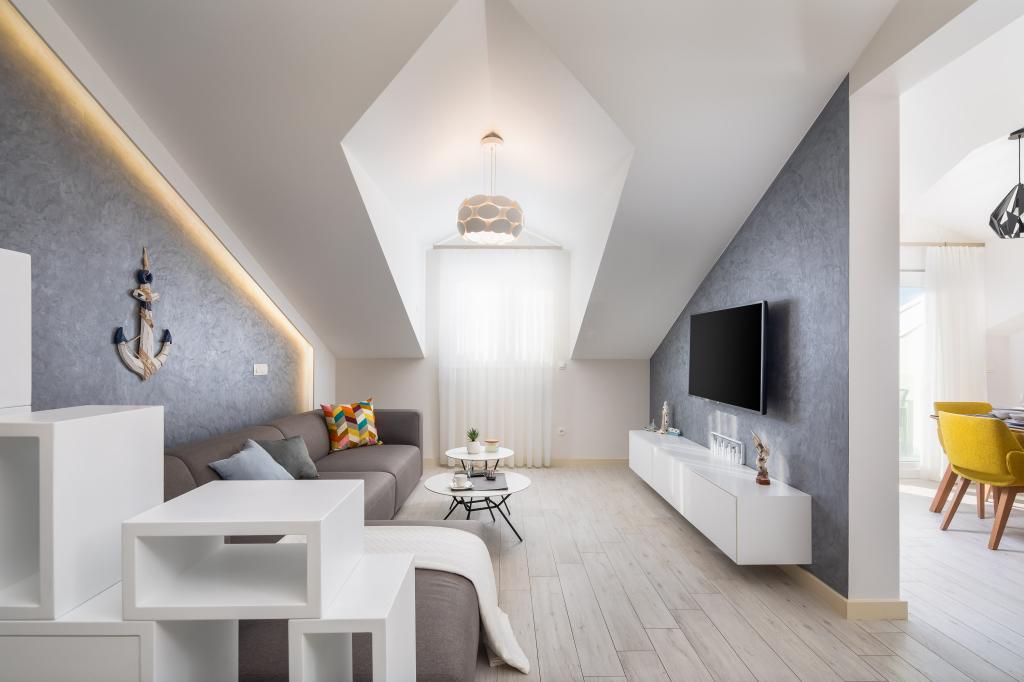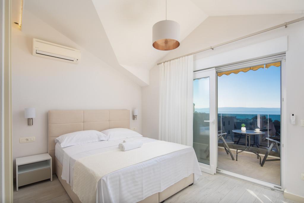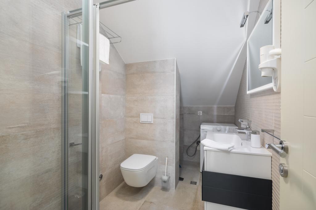Penthouse Potter is a modern apartment with 3 bedrooms and 3 bathrooms. The spacious kitchen offers great equipment. The balcony offers a view of the sea. It is located 50m from the beach in Promajna. There are 2 parking spaces next to the building.