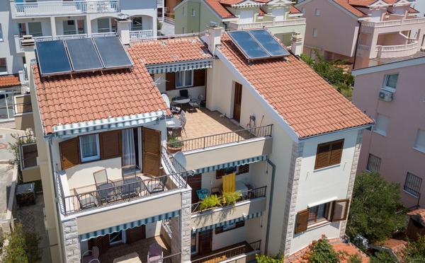Beautifully decorated apartments 60 meters from the beach in Promajna. The house has a total of 6 apartments. All apartments are equipped with air conditioning and free Wi-Fi. In front of the house is a large yard with olive trees and parking for all our guests.