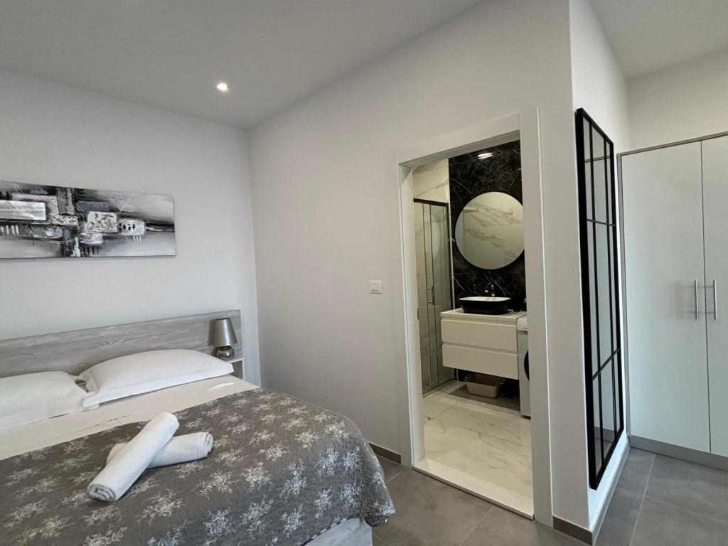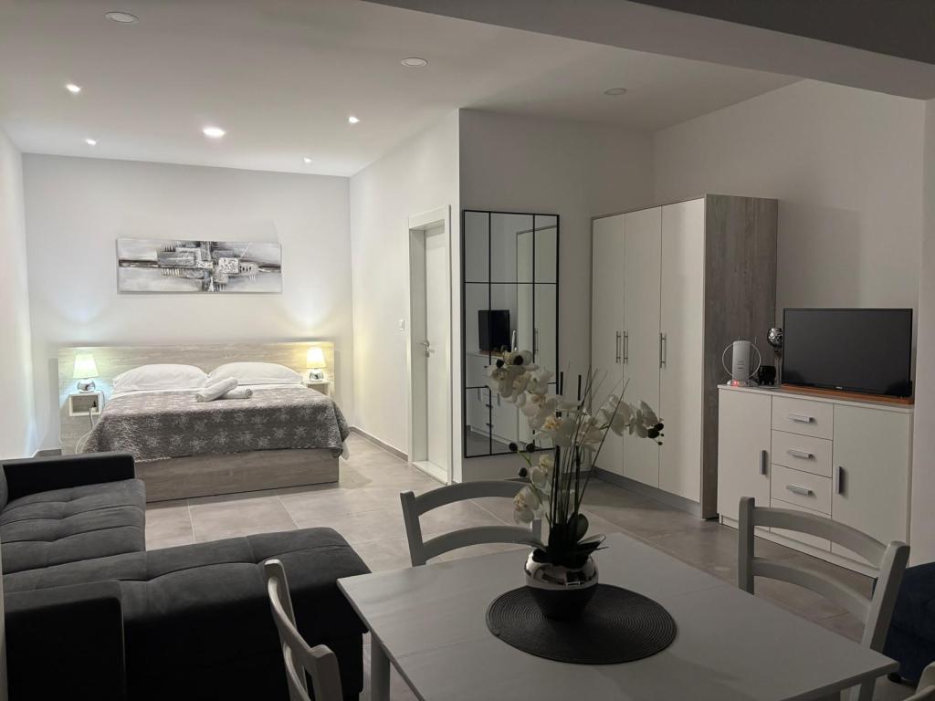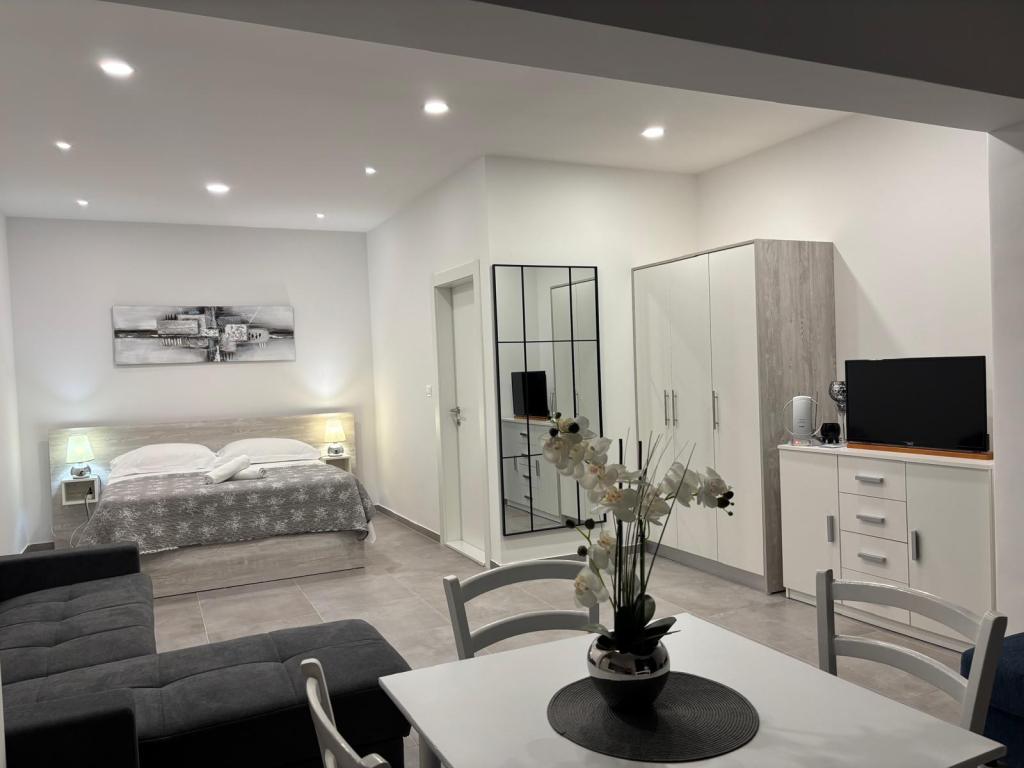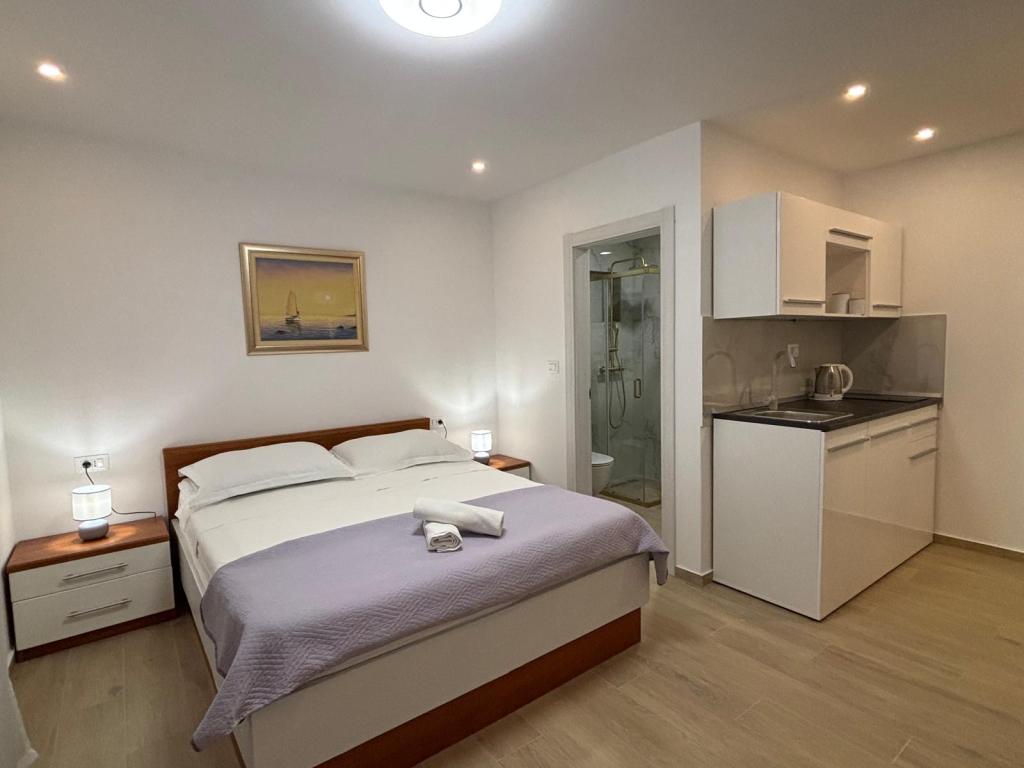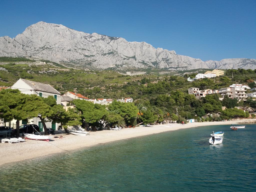 A small place on the beach, below the mountain Biokovo, ideal for a vacation. Our house is located first row to the sea, the apartments have a terrace overlooking the sea. The beach is pebbly away a few minutes from our apartments and in front of the house is a rocky beach. In front of the house are Mediterranean fruit trees, lemons, oranges, olives .... Parking is in front of our house for our guests.