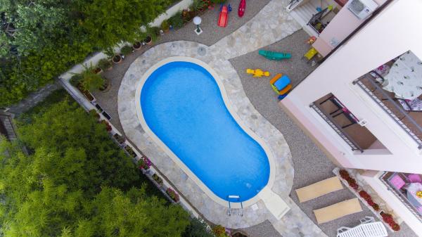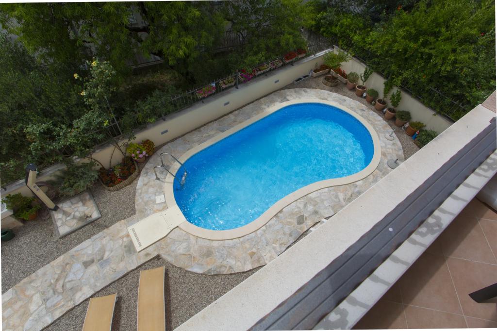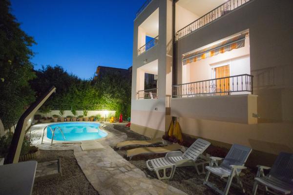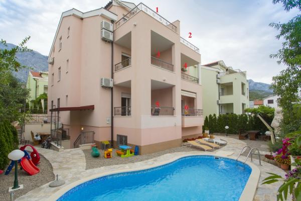 APARTMENTS BOJKA - a new house with a swimming pool, with luxury apartments are located in the town of Promajna, in the street Obala 24 C, in the center of the town, approx. 90 m from the main beach. In addition to accommodation in exclusively furnished apartments, you can also use the swimming pool next to the house. All kitchens are modernly equipped (fridge with freezer, stove, oven, kettle, dishwasher...), all bathrooms are modernly equipped (iron with table, washing machine, hairdryer...). There is free wi-fi internet in every apartment. The app tags are: Bojka 1, 2, 3, 4, 5 and 6. Each apartment has one free parking lot next to the house. In the yard of the house there is a grill for all guests as well as a table next to the grill. A housekeeper who takes care of the guests stays in the building all the time.