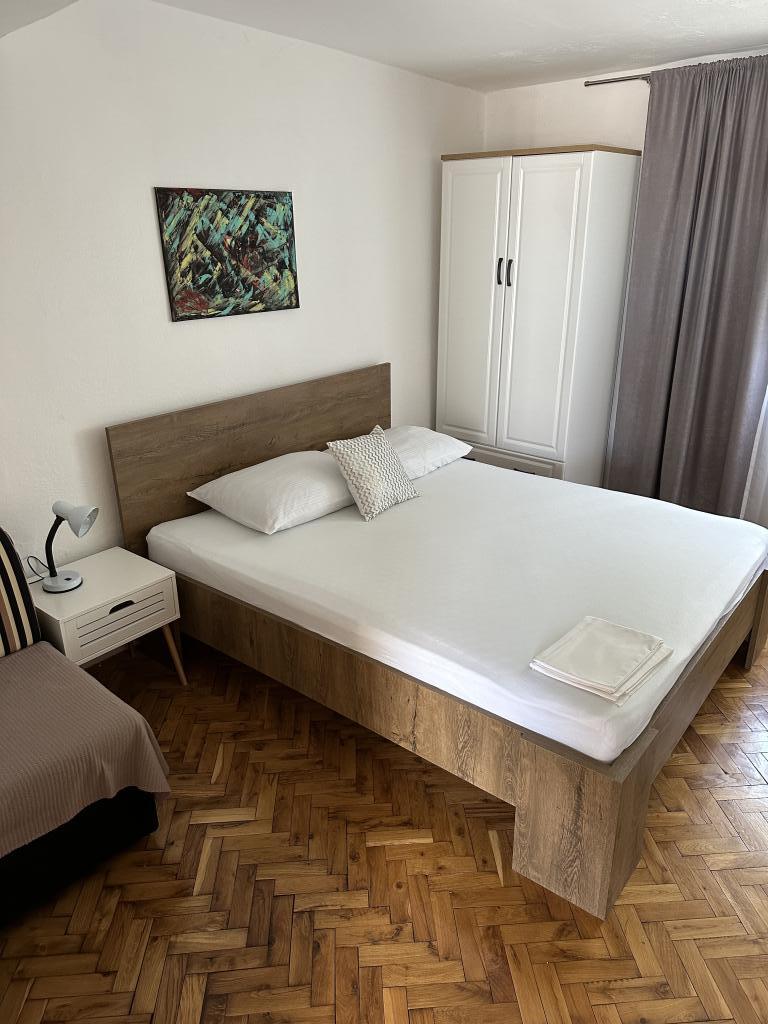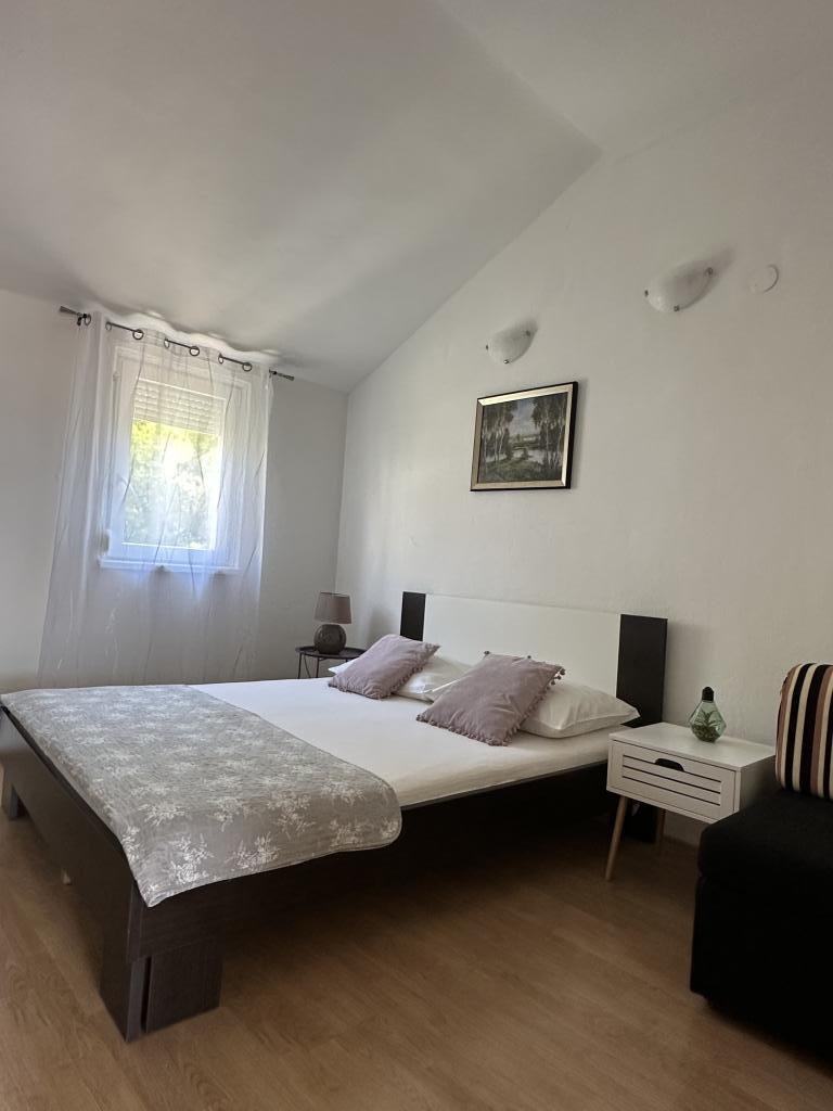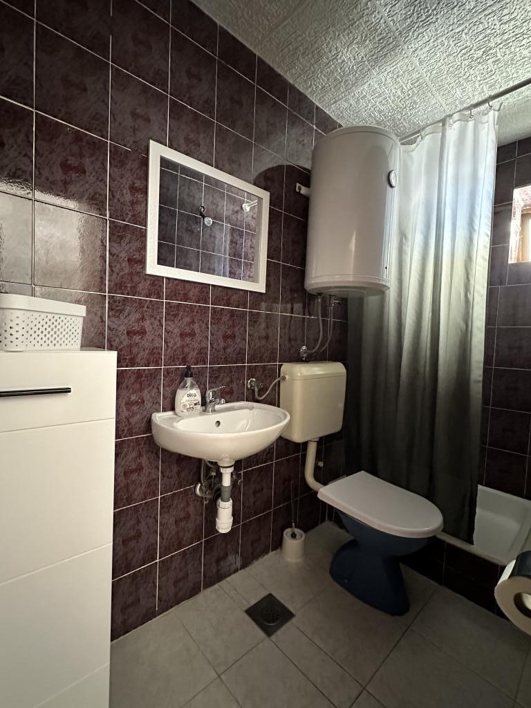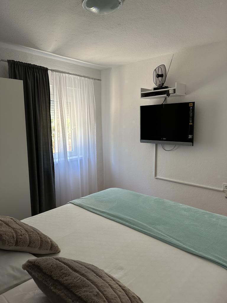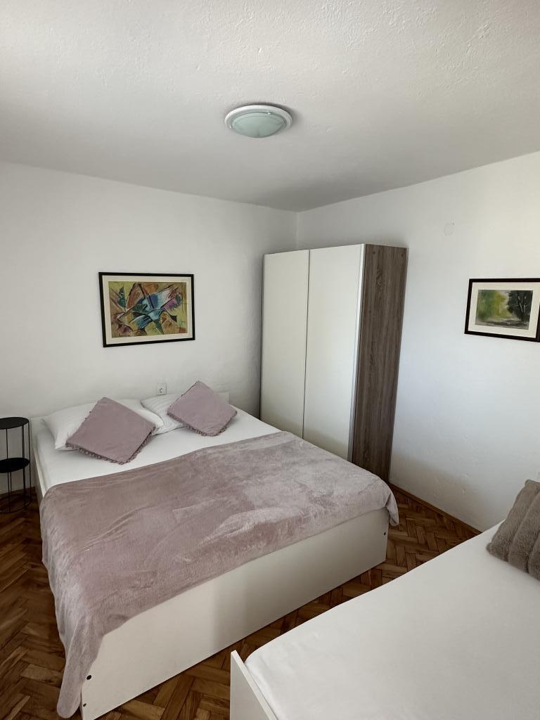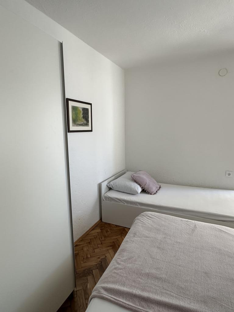 Promajna apartment 200 m from the sea. Separate 3 apartments per floor with sea view. Parking, TV, air conditioning, internet. The beach is located in a pine forest. A small seaside resort ideal for vacations, next to which there is a children's village known for treating bronchitis. Each apartment has two bedrooms with double beds plus extra bed, bathroom, kitchen, terrace with sea view. Makarska 5km away. Baska Voda 3km away. Promajna is connected with the Baška Voda promenade through the pine forest by the sea. Price is 80 euros plus 1 € tourist tax per adult.