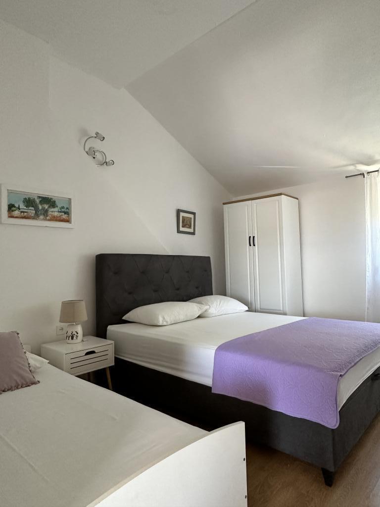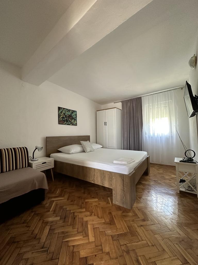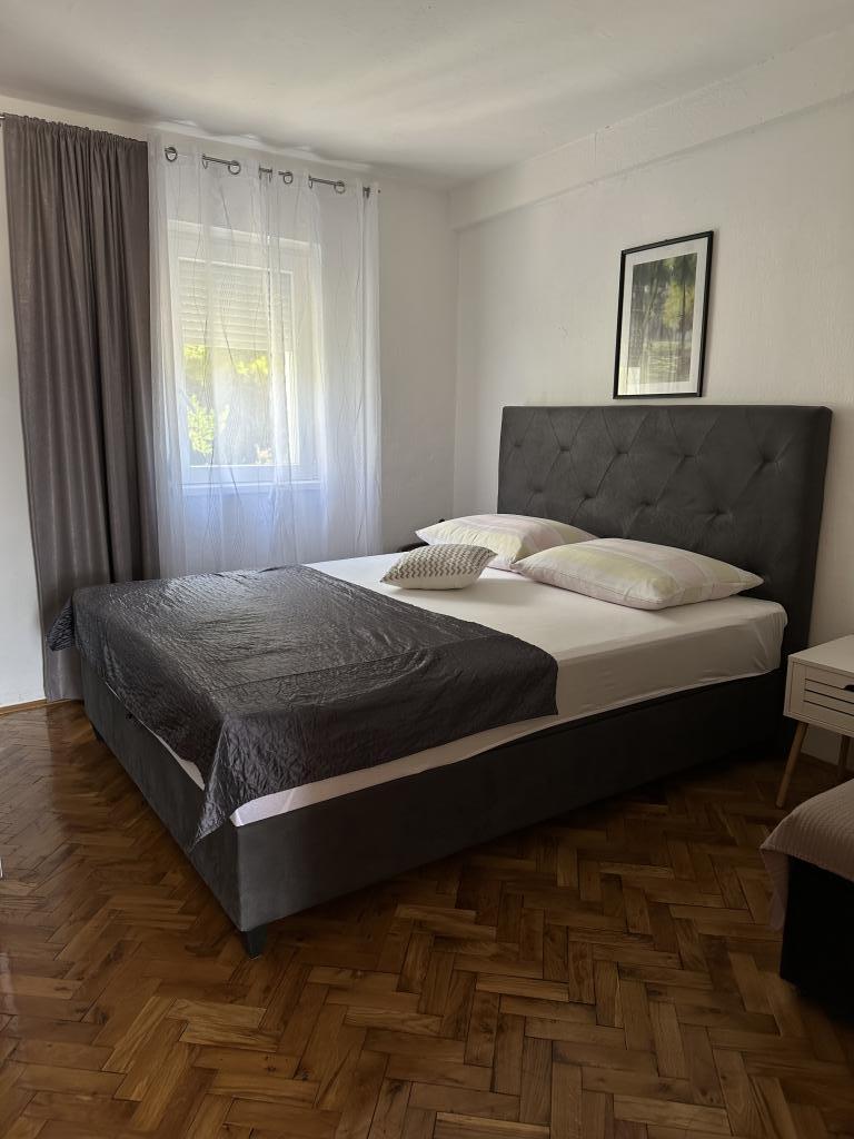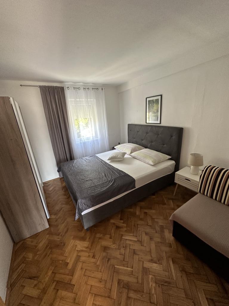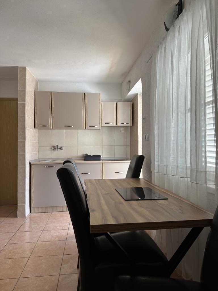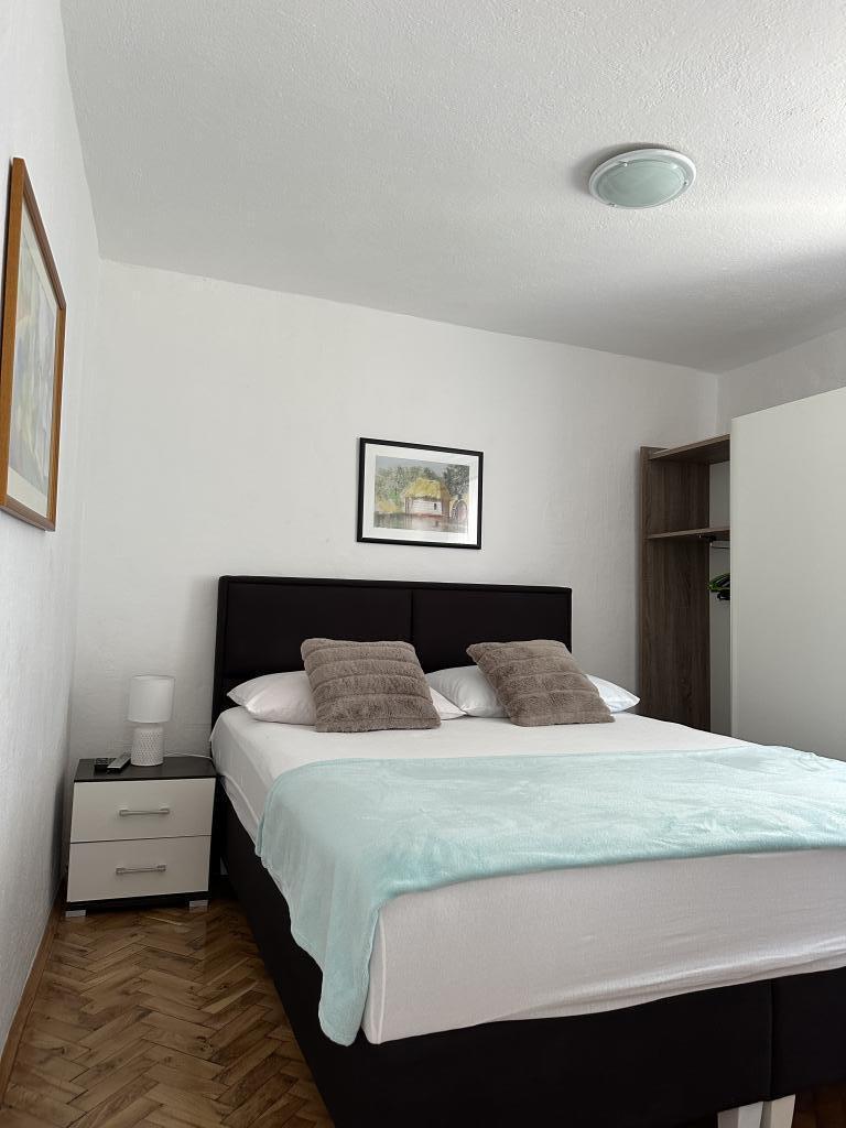 Promajna apartment 200 m from the sea. Separate 3 apartments per floor with sea view. Parking, TV, air conditioning, internet. The beach is located in a pine forest. A small seaside resort ideal for vacations, next to which there is a children's village known for treating bronchitis. Each apartment has two bedrooms with double beds plus extra bed, bathroom, kitchen, terrace with sea view. Makarska 5km away. Baska Voda 3km away. Promajna is connected with the Baška Voda promenade through the pine forest by the sea. Price is 80 euros plus 1 € tourist tax per adult.