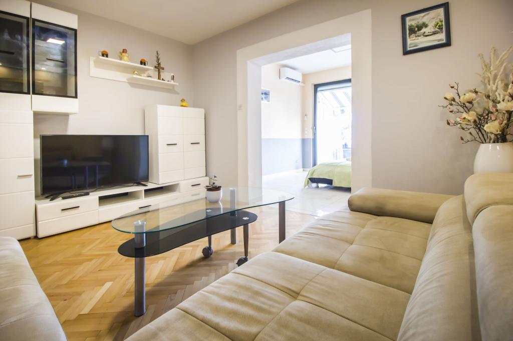 House recommendable, apartment consistent with the description and photos. Perfect location, leaving the house in front of the descent to the wide, quiet and partially shaded beach with a shower, changing room and toilet. A few steps to water attractions, all of which are in Croatia. A functional and well-equipped apartment with a spacious and comfortable bathroom, a large terrace with a beautiful sea view and comfortable furniture. A large and comfortable bed, well-functioning and quiet air conditioning, unreserved Wi-Fi, parking at the house. Edita restaurant on the ground floor serves delicious grilled calamari and more (pizza, steaks ...). Other equally delicious restaurants within a few steps. The hosts always smiling, polite and chatty, prepared a delicious dinner for us - a grilled adviser - lick your fingers! They offered to extend the stay for a few days - free - unfortunately, but we had to go home. We are very happy to come back next year. WE RECOMMEND!