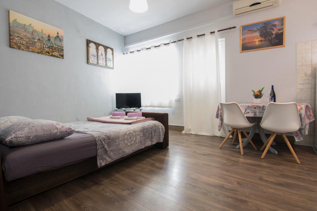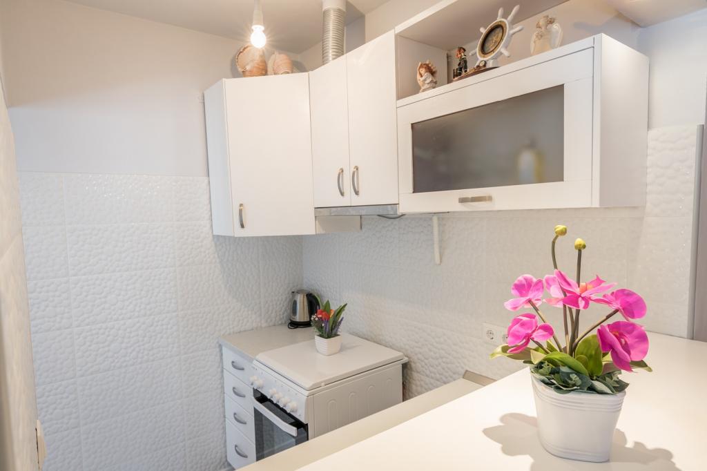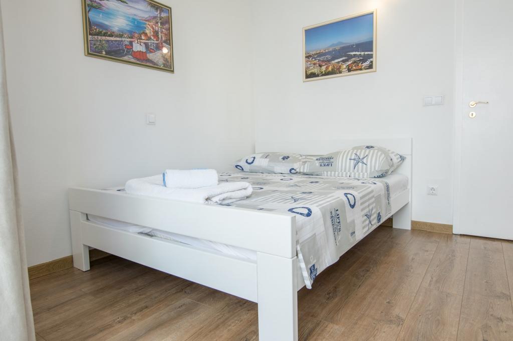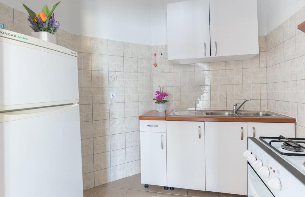 Fully equipped apartments Marinko are located in the center of Promajna, only 30m from the beach and the sea, 100 m from the shop, market and post office. The apartments have their own parking lots located next to the building. The beach has natural shade and small pebbles which is ideal for families with small children.