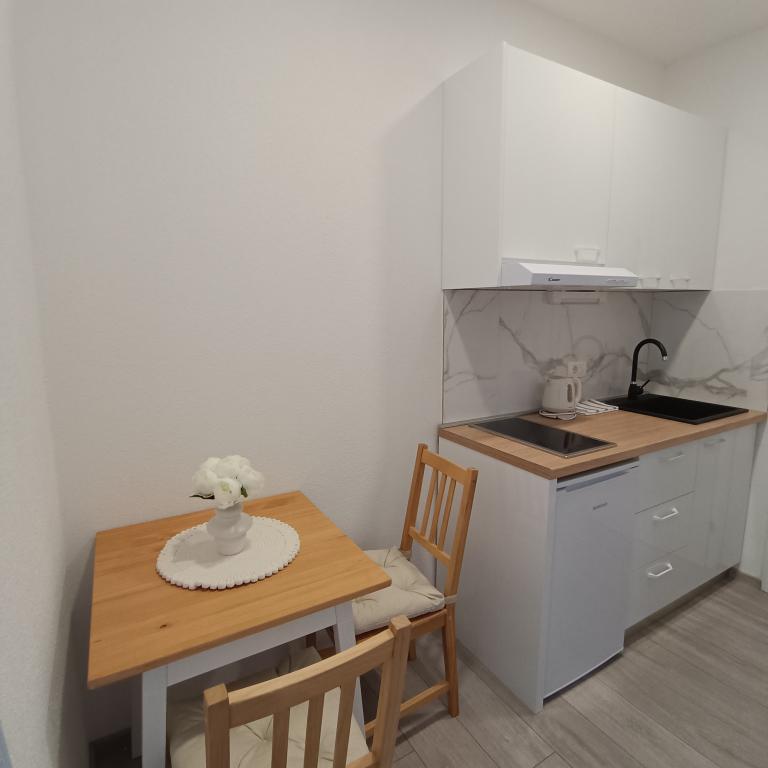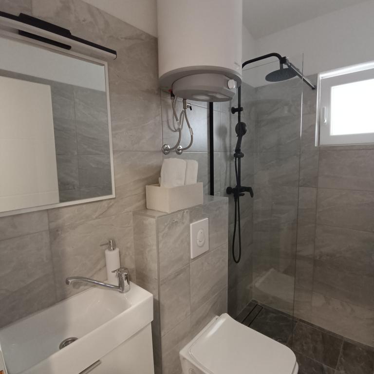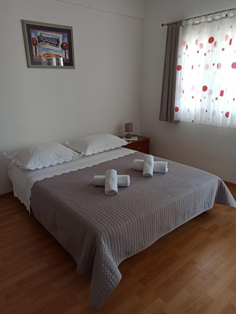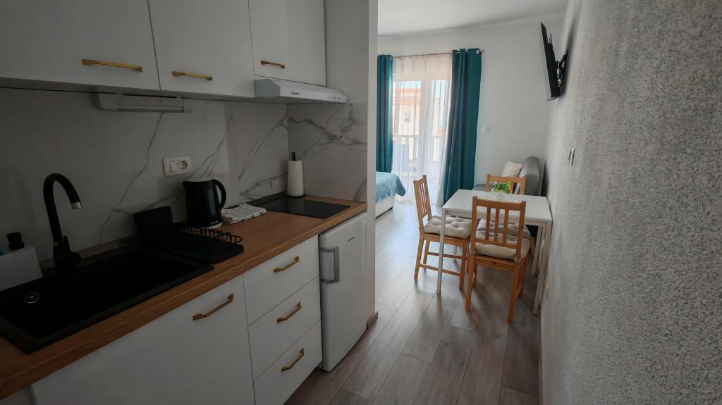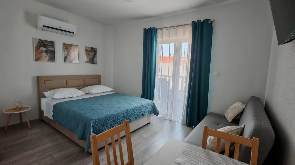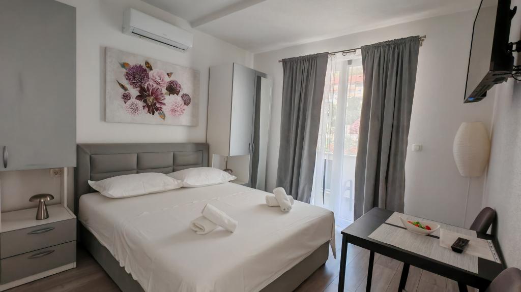 We stayed in a double room with a bathroom, a fully equipped kitchen and a balcony with a side view of both the sea and the mountains. The room was very clean and tidy, without any complaints. The owner was available on site, very communicative and helpful not only in matters of accommodation but also advised where to eat well and cheaply, where to buy the best home-made olive oil, etc. Next year we will definitely come back, this time with friends.