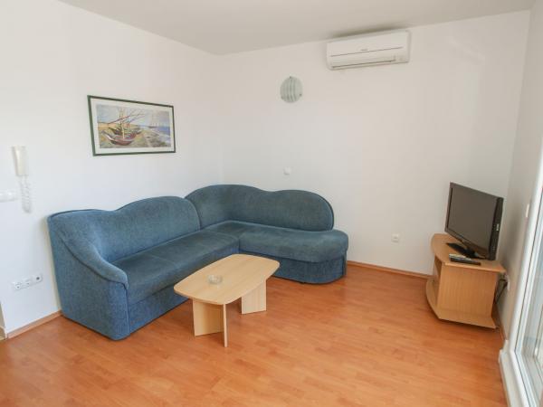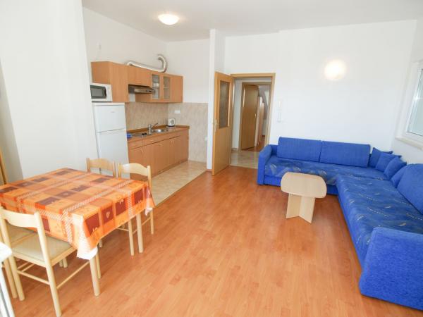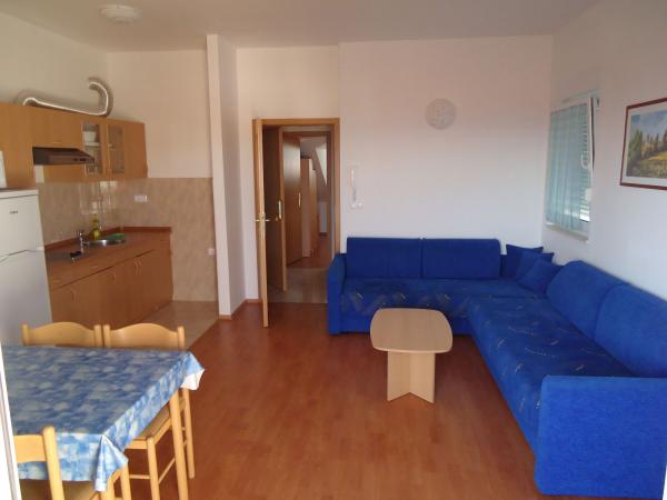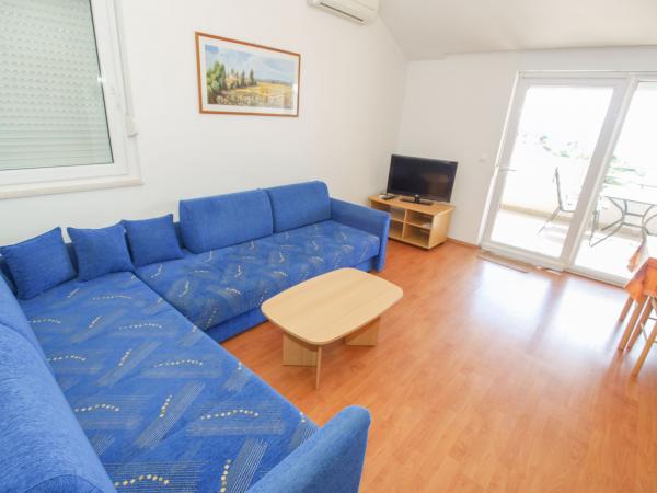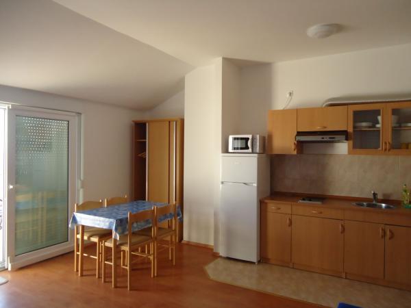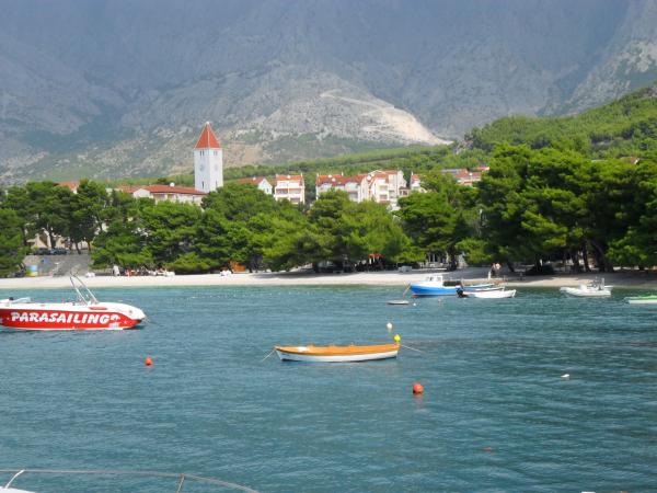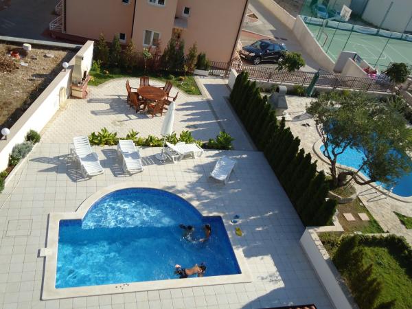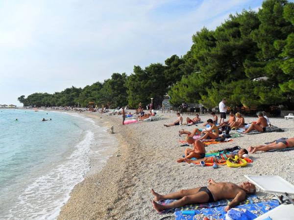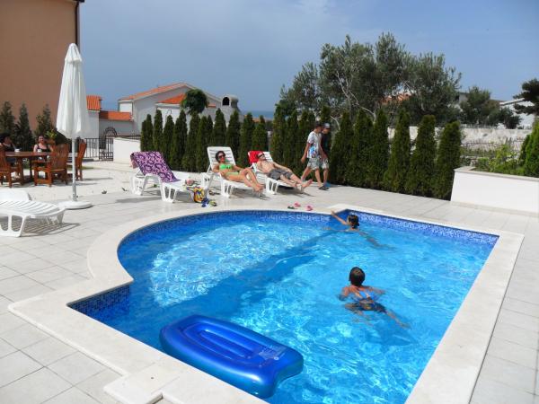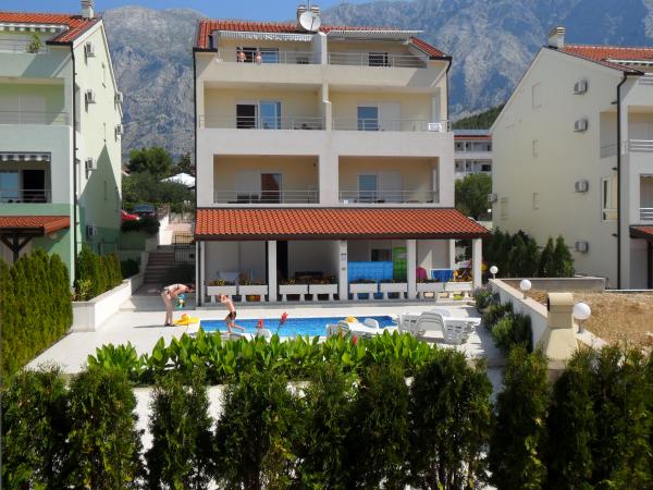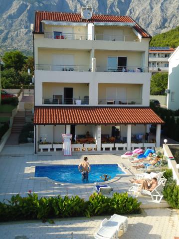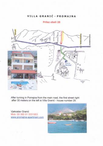 Villa Granić is located in the tourist town of Promajna in a beautifully landscaped environment, only 100 meters from the sandy beach with a pine forest, and is suitable for families with children. The villa has its own swimming pool, large yard and closed parking. Each apartment has a large terrace overlooking the sea with a spacious table and chairs. There are 6 restaurants, shops and children's playgrounds nearby. Next to the house is a sports field for basketball and mini football, which is free to use.