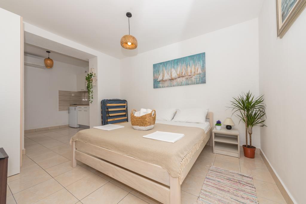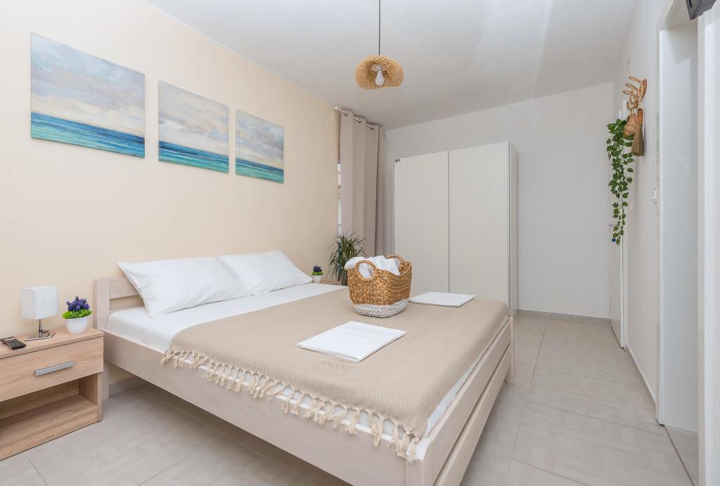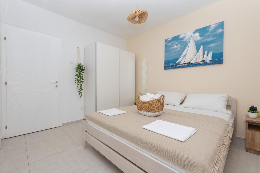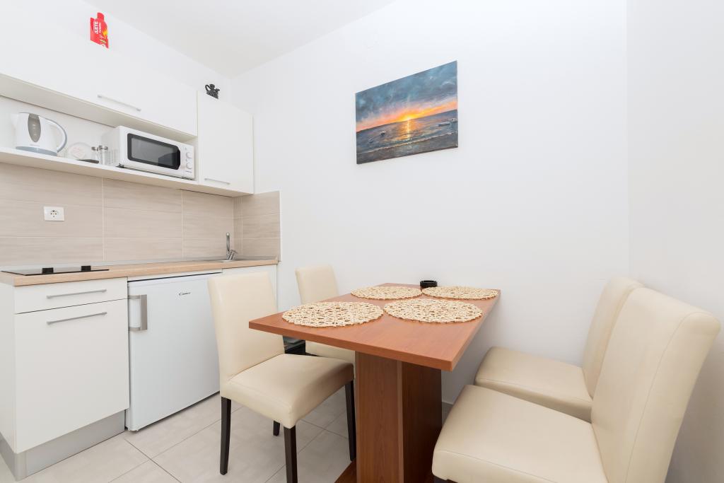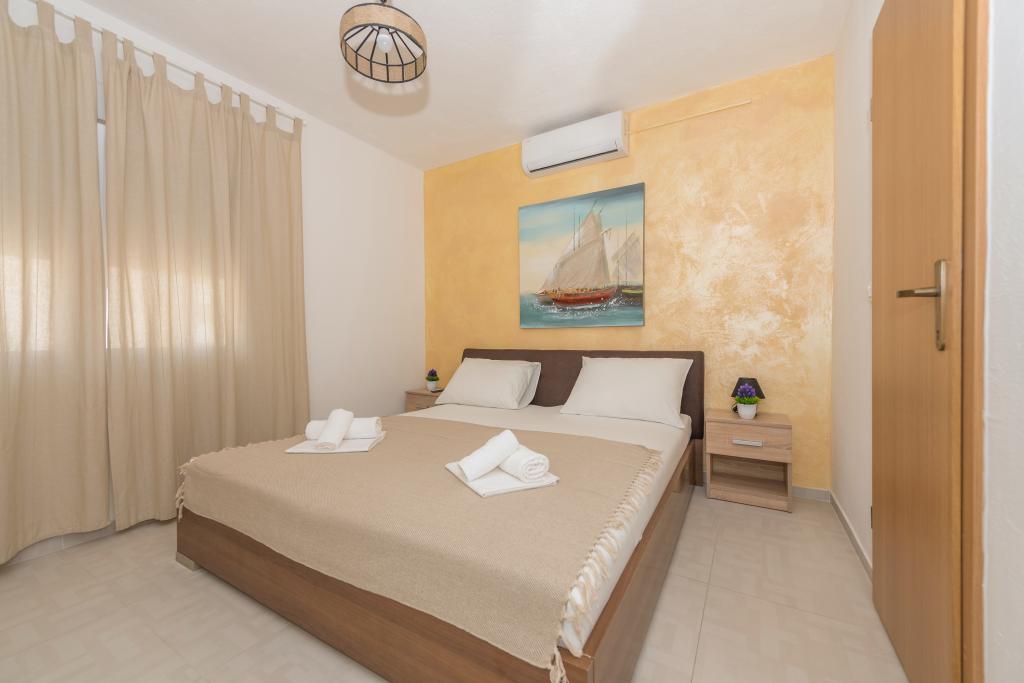 The apartments are located in Promajna, a beautiful small place ideal for vacation. The facility is located in the first row to the sea in the middle of a public beach that abounds in natural shade (pine). Within the facility we have a restaurant that offers a cheap daily menu and a wide range of a la carte dishes. The apartments are fully equipped and ready for your dream vacation.