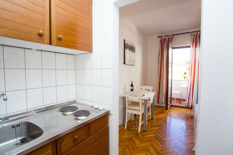 Apartments Zoran are located about 250 meters from the beach and the center of Promajna. The facility consists of several different apartments for 2, 4 and 6 people. On the first and second floor are two studio apartments for two people, and one apartment for 4 people. On the third floor is a large terrace apartment for 6 people.