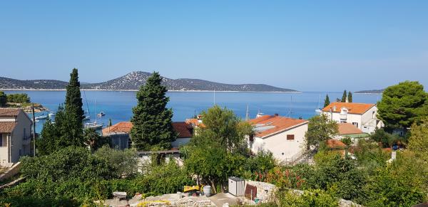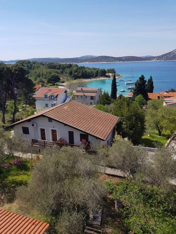 Apartments make up the entire top floor of the house on a quiet farm surrounded by greenery, flowers and garden with terrace with a beautiful view of the nearby islands and Kornati National Park.