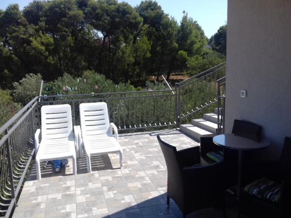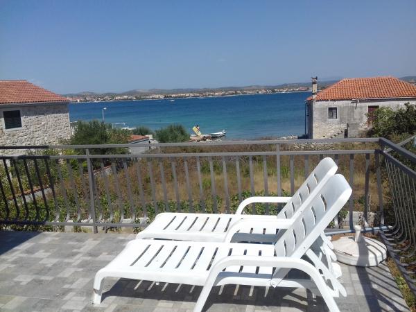 Apartments Faust on the island of Prvic, in Prvic Šepurina. There is no traffic on the island so the island is ideal for family vacations. Two apartments are located on the 1st floor of a family house and one in the attic, in a quiet location 20 meters from the sea, next to the mansion of Faust Vrancic. In the attic of the house is a comfortable apartment, with 3 bedrooms; 2 air-conditioners, dishwasher (up to 6 people), TV, while on the 1st floor are two apartments; smaller apartment has 1 bedroom (max 3 persons) and apartment with two bedrooms and a three bed sofa. All apartments have a balcony overlooking the sea. On the first floor there is a large terrace with a view of Srim and Vodice, equipped with awnings, deck chairs, table, chairs. Guests have access to a barbecue and an outdoor shower. In addition to renting a boat for use, but with a license for a boat leader. We also arrange to transport guests to the island upon arrival and departure. Parking your car is in Srima (at a private yard parking lot charged 30 kn per day).