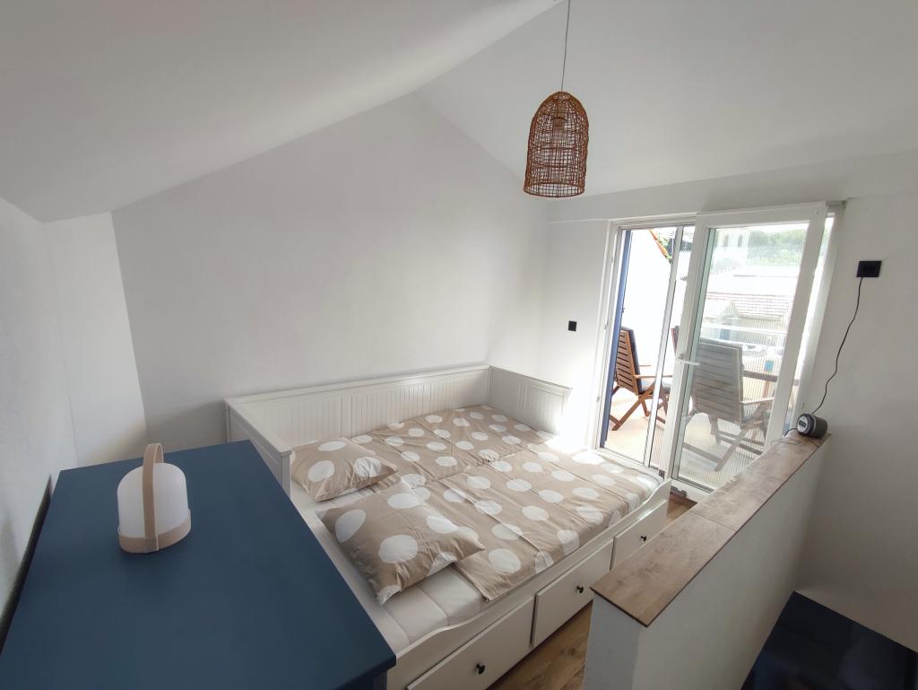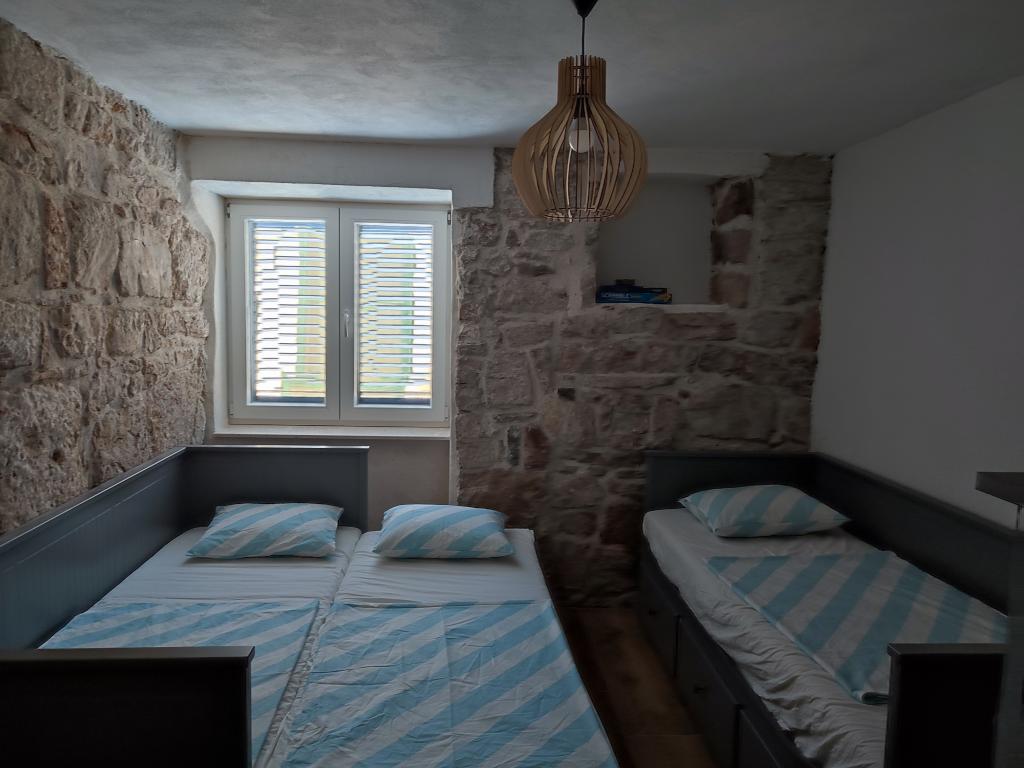 We had the unique opportunity to stay as first guest at this new renovated old townhouse. In the middle of tiny alleys 15 m air distance to the water, with a wonderful view at the village square. We stayed 14 days with three litte kids. 30 s to the water. We went every morning before breakfast for a refresh dive. The island is really small but unbelievable quiet. We stayed at high season. While the mainland was complete overfilled Lucca Prvic was quiet and moderat visited. On the opposite to the village there is a nice pine Forrest with ruff rocky water entrance. Highly recommend are swim shoes. Ivan was a great host. Whether he wasn’t on the island via WhatsApp he was around every time we needed him. This house is highly recommend. We’ll come back for sure