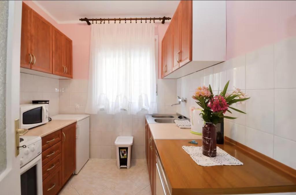Studio apartment "Desiree" is located in a quiet part of the city of Pula full of greenery. The area of the studio apartment is 45 m2, and it is located on the ground floor of a family house with a large yard and a separate entrance. The studio apartment is spacious, bright and comfortable, and consists of a bedroom, kitchen, living room, hallway, bathroom and terrace. It has a TV, air conditioning and free wifi. The kitchen is equipped with all necessary appliances, including a refrigerator, freezer, oven, microwave, coffee maker, electric kettle, cutlery and dishes, which allows you to prepare delicious meals during your stay. In the garden in front of the studio apartment you can relax and enjoy the peaceful surroundings surrounded by greenery. The studio apartment has a comfortable double bed measuring 140 x 200 cm. There is free parking within the house, and it is also possible to park in the public parking lot in front of the house free of charge. A great advantage of this accommodation is the proximity of the city center of Pula and the Arena amphitheater, which can be reached on foot in 20 minutes.