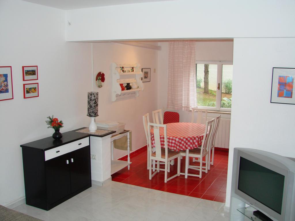 Fully equipped apartment on the ground floor of a family house with a separate entrance. Two bedrooms, spacious living room, dining room and kitchen and bathroom and other toilet. Spacious yard with covered barbecue area, swings and covered parking space for two vehicles. Close to the sea and the beach. The apartment is located near Pula (5 km from the city center) overlooking the Brijuni National Park.