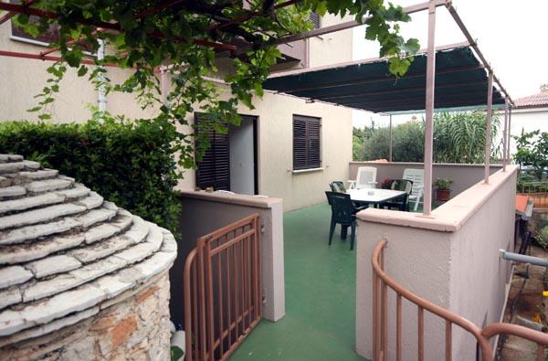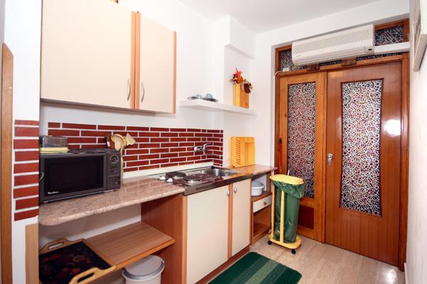 Ugodni, uredni i kompletno opremljeni (kuhinja,soba,kupaonica,terasa, TV sa satelitskim programima) aprtmani s pogledom na more, smješteni su 100m od plaže. Ponuđeno je besplatno parkiralište i besplatni bežični pristup internetu. Dostupan je i zajednički vrt s opremom za roštilj. Apartmani su udaljeni otprilike 2-3 km od centra gdje se mogu pronaći mnoge znamenitosti poput Amfiteatra, Zlatnih Vrata, Dvojnih vrata... i 4 km od busnog i željezničkog kolodvora te 6km od zračne luke. U cijenu je uključena boravišna pristojba i prijava boravka.