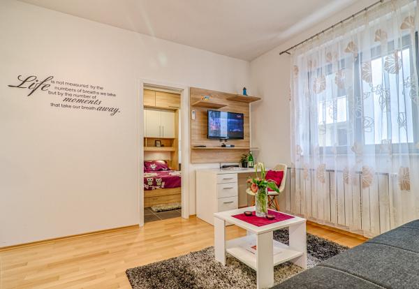 Read more Accommodation unitsResidence tax is included in the price. The reservation is paid 30% of the total amount, the rest in cash on the day of arrival. A security deposit of 100 € is payable upon arrival (returning if there is no damage). The arrival time is from 14 PM. Departure time 10 AM Welcome !!! Apartment Love is located in the Kačić Miošić Street Apartment Life is located in Kačić Miošić Street I DO NOT RENT ON ONE YEAR !!!