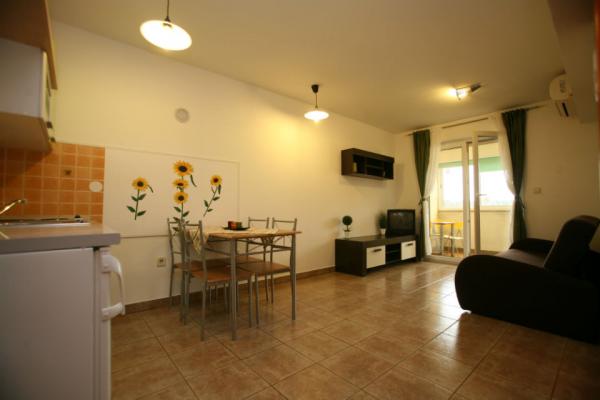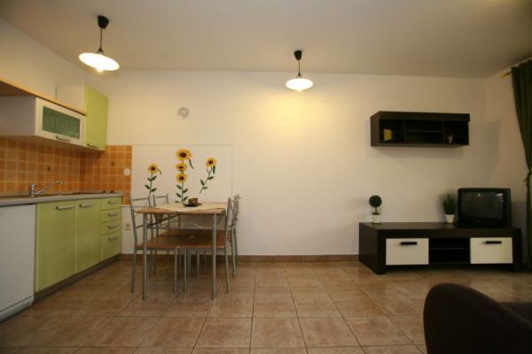 Apartment Lungo Mare, situated in a quiet part of Pula, just 150 meters from the sea and beautiful beaches in the promenade, surrounded by pine trees on one side and the beach and the sea on the other. The apartment is located on the ground floor, 42m2 in size, consisting of a bedroom, living room with sofa bed, kitchen, bathroom, enclosed patios and corridors. The apartment has its own parking place. Apartment Lungo Mare is located a few hundred meters from the restaurant, marketplace, supermarket, pharmacy, tennis courts ... from the city center is only 2000 meters.
