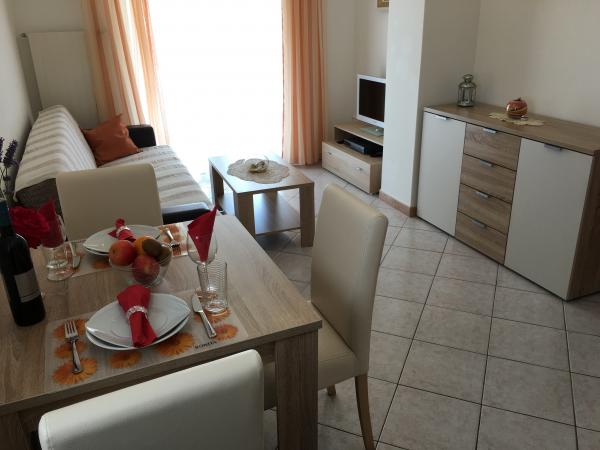 Residential tax is not included in price.The apartments are fully furnished with air conditioning, TV satellite dish, kitchen, bedding, towels and everything else that is needed in an apartment for your holiday.