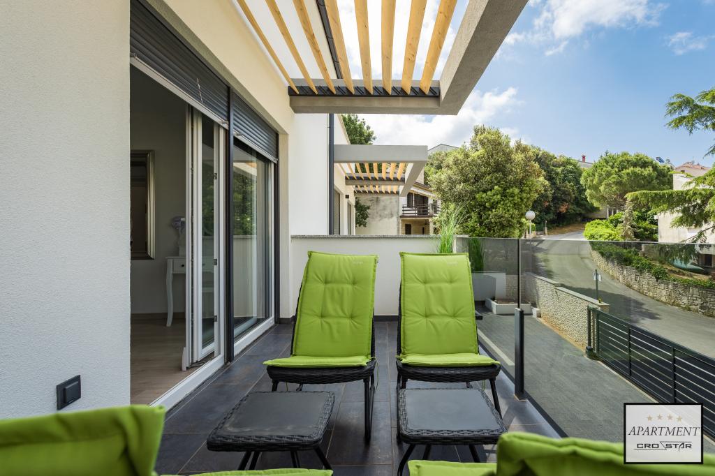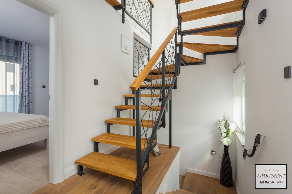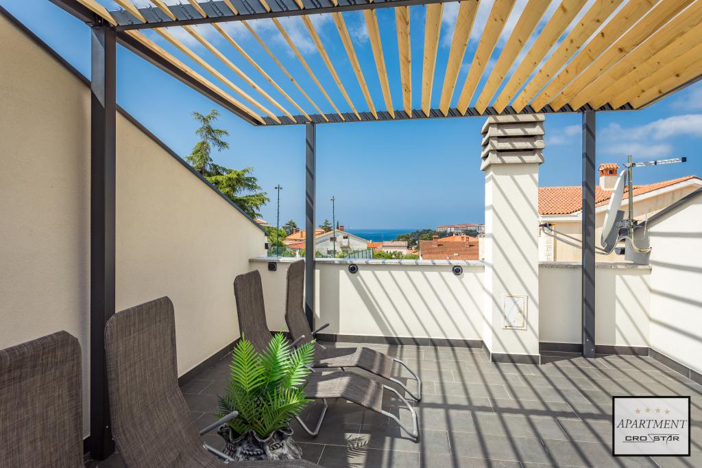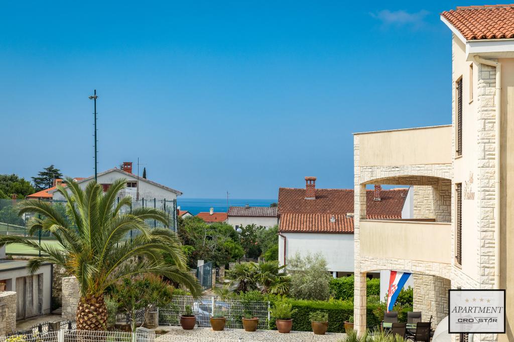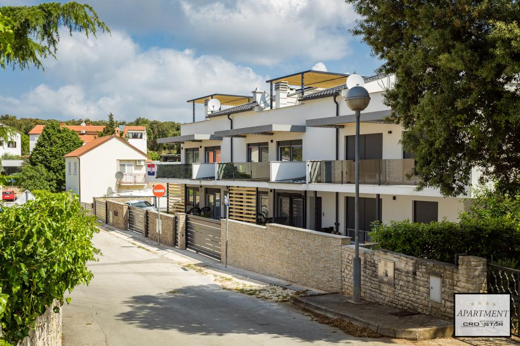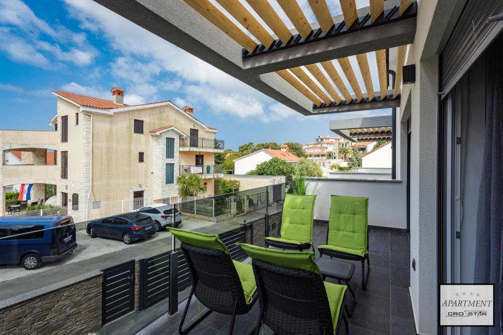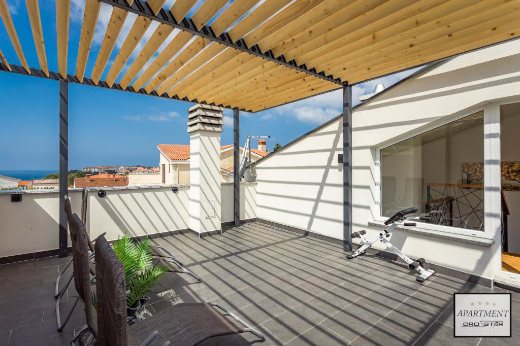 Cro/star is a beautiful house with two bedrooms, both of which have a balcony with a view of the sea and beyond. It also contains a bathroom with toilet + a separate toilet as well as a gallery with a large bed for two people. Living room together with kitchen and dining table on two sides of a large ground floor terrace, one of which has a pavilion. Then a roof terrace of 24 m2 for sunbathing with a wonderful view of the sea and cheeses. There is a parking lot for one car in front of the house and everything is inside the yard. The beach is only 200 meters away and approximately 5 minutes on foot. Shop, dentist and restaurants are only 5 minutes by car to the city of Pula and 5/10 minutes to other destinations if desired. The house has 4 stars. The beach is beautiful for everyone's taste.