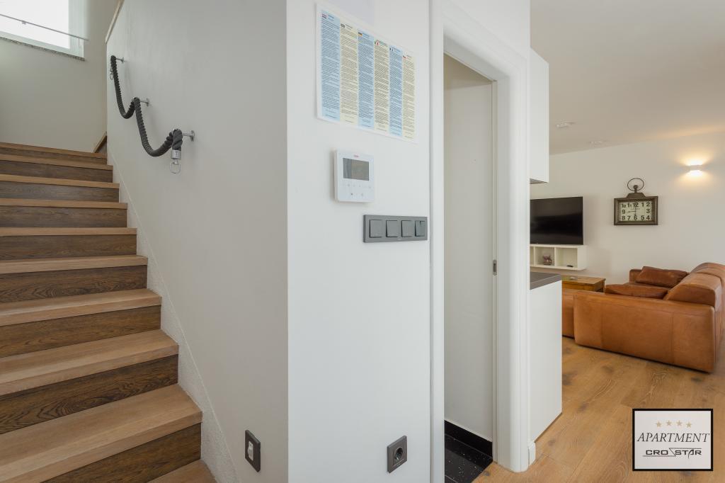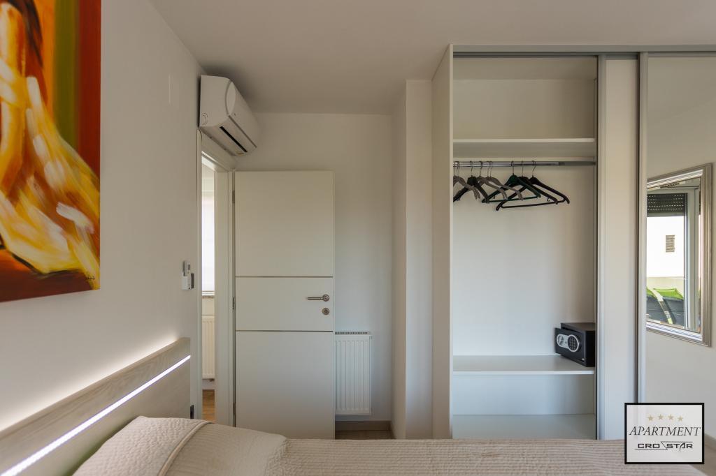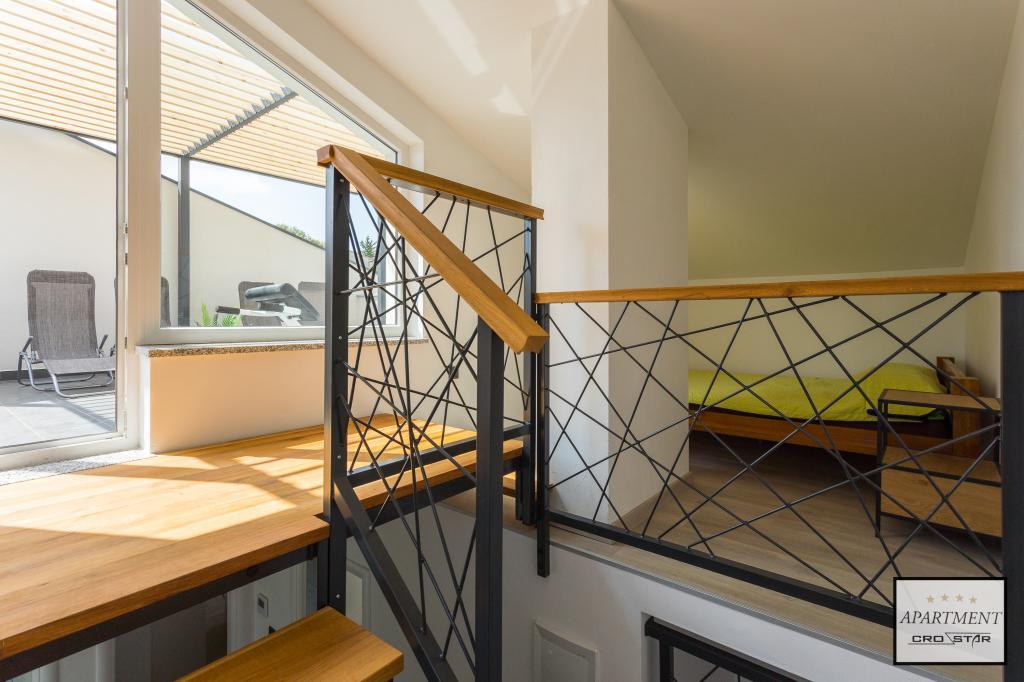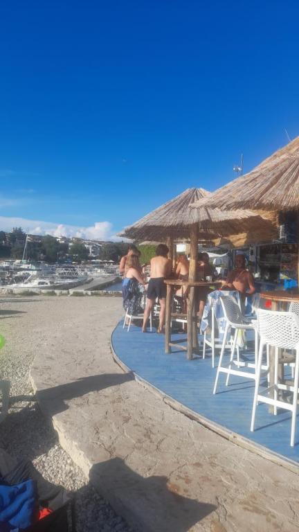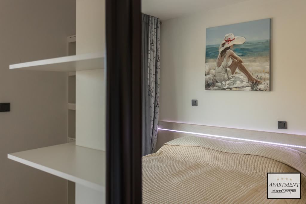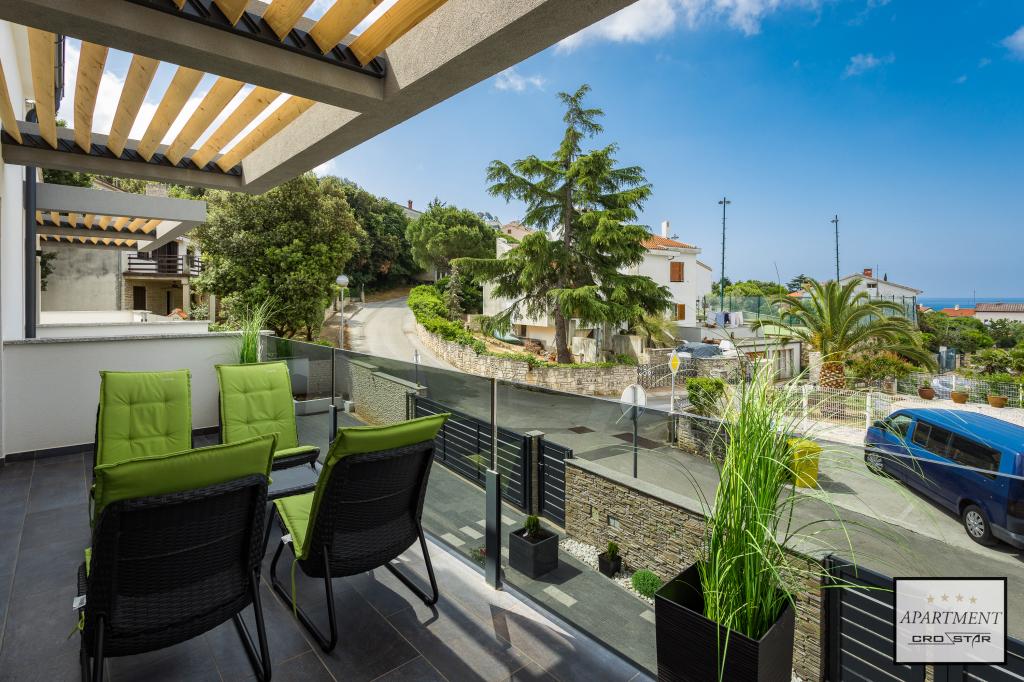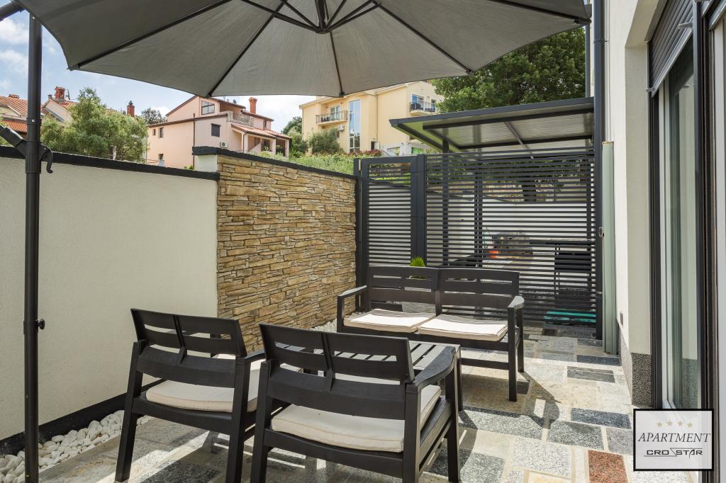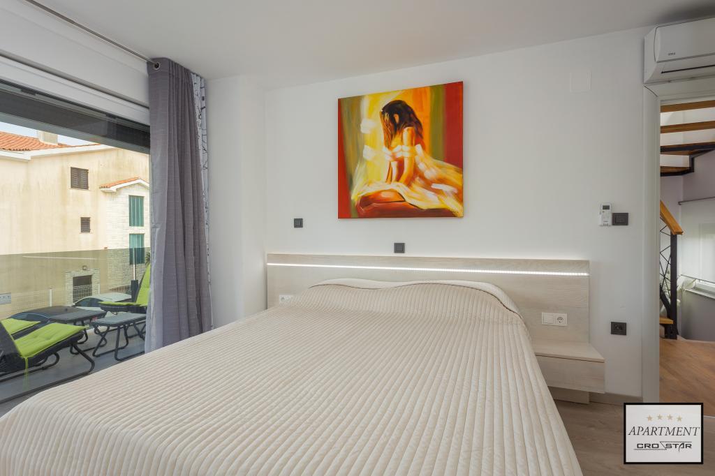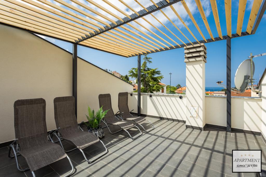 Cro/star is a beautiful house with two bedrooms, both of which have a balcony with a view of the sea and beyond. It also contains a bathroom with toilet + a separate toilet as well as a gallery with a large bed for two people. Living room together with kitchen and dining table on two sides of a large ground floor terrace, one of which has a pavilion. Then a roof terrace of 24 m2 for sunbathing with a wonderful view of the sea and cheeses. There is a parking lot for one car in front of the house and everything is inside the yard. The beach is only 200 meters away and approximately 5 minutes on foot. Shop, dentist and restaurants are only 5 minutes by car to the city of Pula and 5/10 minutes to other destinations if desired. The house has 4 stars. The beach is beautiful for everyone's taste.